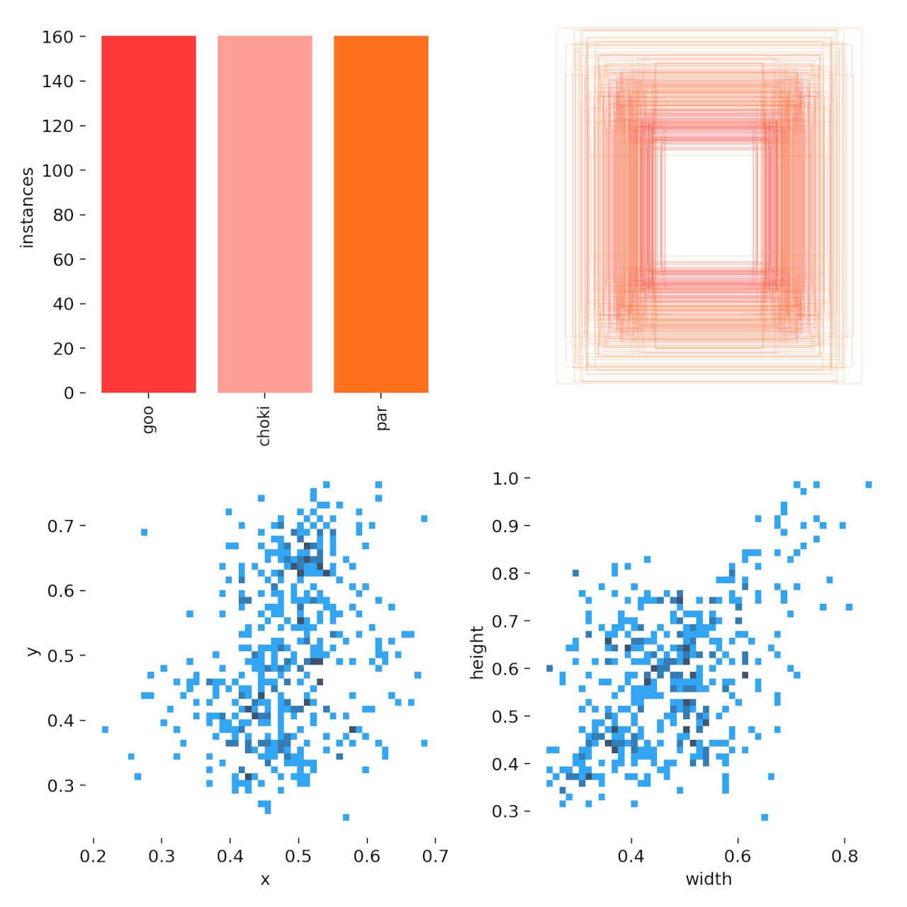 (py_learn) python train.py --epochs 100 --data data/janken4_dataset/janken4_dataset.yaml --weights yolov5s.pt --name janken4_yolov5s train: weights=yolov5s.pt, cfg=, data=data/janken4_dataset/janken4_dataset.yaml, hyp=data\hyps\hyp.scratch-low.yaml, epochs=100, batch_size=16, imgsz=640, rect=False, resume=False, nosave=False, noval=False, noautoanchor=False, noplots=False, evolve=None, evolve_population=data\hyps, resume_evolve=None, bucket=, cache=None, image_weights=False, device=, multi_scale=False, single_cls=False, optimizer=SGD, sync_bn=False, workers=8, project=runs\train, name=janken4_yolov5s, exist_ok=False, quad=False, cos_lr=False, label_smoothing=0.0, patience=100, freeze=[0], save_period=-1, seed=0, local_rank=-1, entity=None, upload_dataset=False, bbox_interval=-1, artifact_alias=latest, ndjson_console=False, ndjson_file=False github: YOLOv5 is out of date by 3 commits. Use 'git pull' or 'git clone https://github.com/ultralytics/yolov5' to update. YOLOv5 v7.0-294-gdb125a20 Python-3.11.8 torch-2.2.1+cu121 CUDA:0 (NVIDIA GeForce RTX 4070 Ti, 12282MiB) hyperparameters: lr0=0.01, lrf=0.01, momentum=0.937, weight_decay=0.0005, warmup_epochs=3.0, warmup_momentum=0.8, warmup_bias_lr=0.1, box=0.05, cls=0.5, cls_pw=1.0, obj=1.0, obj_pw=1.0, iou_t=0.2, anchor_t=4.0, fl_gamma=0.0, hsv_h=0.015, hsv_s=0.7, hsv_v=0.4, degrees=0.0, translate=0.1, scale=0.5, shear=0.0, perspective=0.0, flipud=0.0, fliplr=0.5, mosaic=1.0, mixup=0.0, copy_paste=0.0 Comet: run 'pip install comet_ml' to automatically track and visualize YOLOv5 runs in Comet TensorBoard: Start with 'tensorboard --logdir runs\train', view at http://localhost:6006/ Overriding model.yaml nc=80 with nc=3 from n params module arguments 0 -1 1 3520 models.common.Conv [3, 32, 6, 2, 2] 1 -1 1 18560 models.common.Conv [32, 64, 3, 2] 2 -1 1 18816 models.common.C3 [64, 64, 1] 3 -1 1 73984 models.common.Conv [64, 128, 3, 2] : Starting training for 100 epochs... Epoch GPU_mem box_loss obj_loss cls_loss Instances Size 0/99 3.35G 0.08231 0.02932 0.03379 37 640: 100%|██████████| 30/30 [00:03<00:00, 9. Class Images Instances P R mAP50 mAP50-95: 100%|██████████| 4/4 [00:00<0 all 120 120 0.00334 0.992 0.0603 0.0182 : Epoch GPU_mem box_loss obj_loss cls_loss Instances Size 99/99 3.98G 0.01874 0.009725 0.00775 38 640: 100%|██████████| 30/30 [00:02<00:00, 12. Class Images Instances P R mAP50 mAP50-95: 100%|██████████| 4/4 [00:00<0 all 120 120 0.993 0.992 0.995 0.787 100 epochs completed in 0.093 hours. Optimizer stripped from runs\train\janken4_yolov5s\weights\last.pt, 14.4MB Optimizer stripped from runs\train\janken4_yolov5s\weights\best.pt, 14.4MB Validating runs\train\janken4_yolov5s\weights\best.pt... Fusing layers... Model summary: 157 layers, 7018216 parameters, 0 gradients, 15.8 GFLOPs Class Images Instances P R mAP50 mAP50-95: 100%|██████████| 4/4 [00:00<0 all 120 120 0.993 0.992 0.995 0.788 goo 120 40 0.984 1 0.995 0.754 choki 120 40 1 0.977 0.995 0.755 par 120 40 0.994 1 0.995 0.855 Results saved to runs\train\janken4_yolov5s