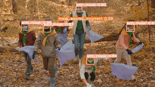 (py_learn) python detect2.py --weights ./runs/train/mask_yolov5s/weights/best.pt --source ../../Images/mask.jpg --view-img (py_learn) python detect2.py --weights ./runs/train/mask_yolov5s/weights/best.pt --source ../../Videos/mask2.mp4 --view-img (py_learn) python detect2.py --weights ./runs/train/mask_yolov5s/weights/best.pt --source ../../Videos/mask-test.mp4 --view-img