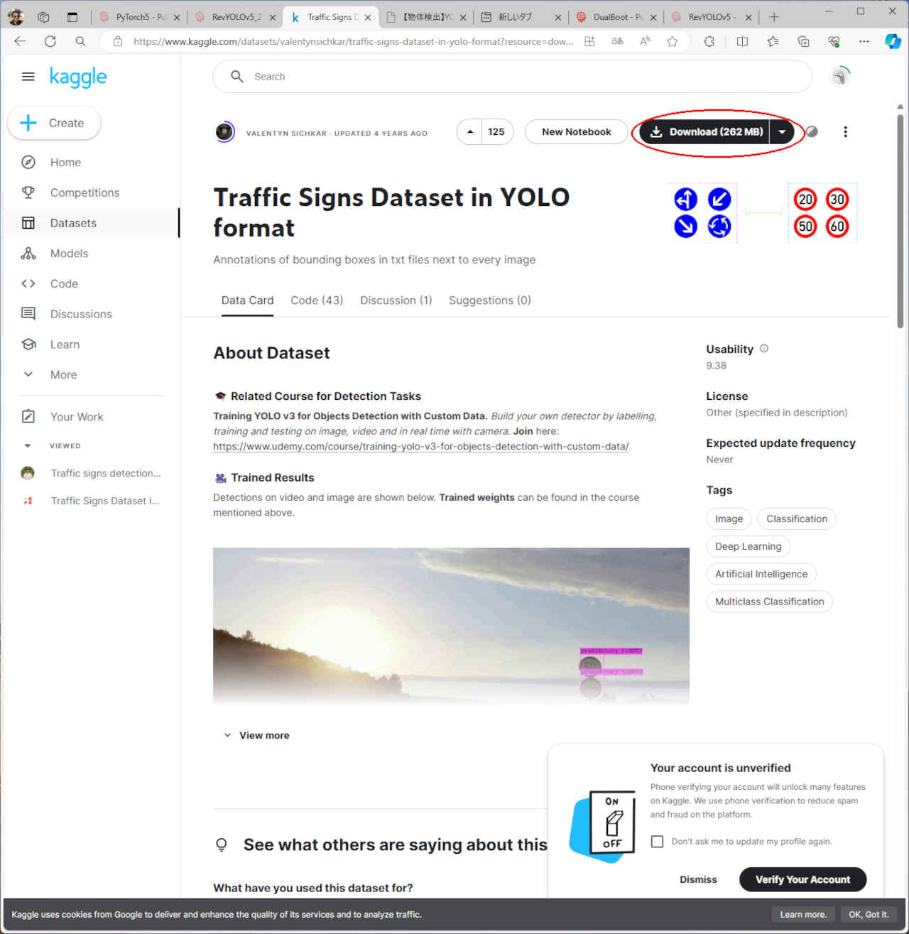 | 交通標識 (Traffic Signs Dataset) | 741 | 2分30秒 | 7分1秒 | 20分36秒 | |