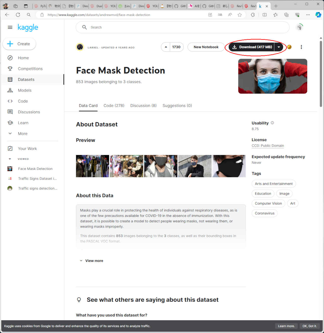 | マスク着用 (Mask Wearing Dataset) | 853 | 8分35秒 | |||