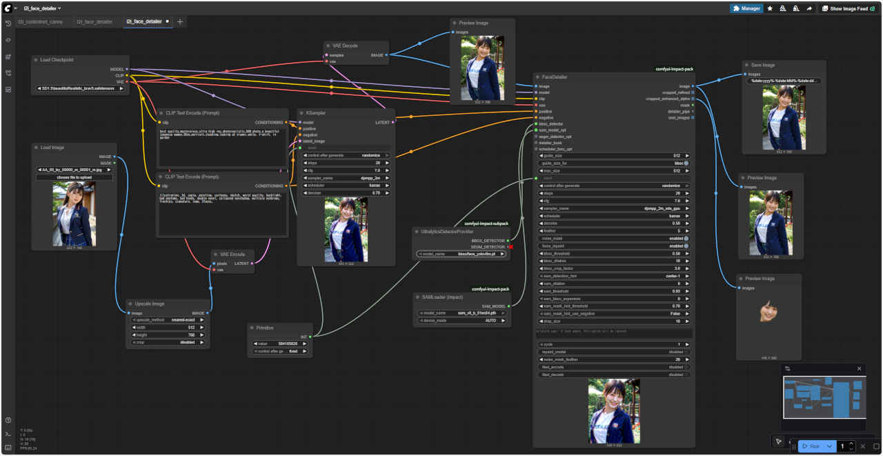 ②「Load Image」ノードの参照画像を指定する(この機能を使うときは顔のみの画像を使用する)