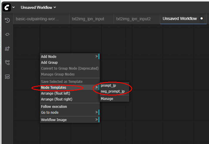 ① ノード添付の サンプル基本ワークフローを読み出す