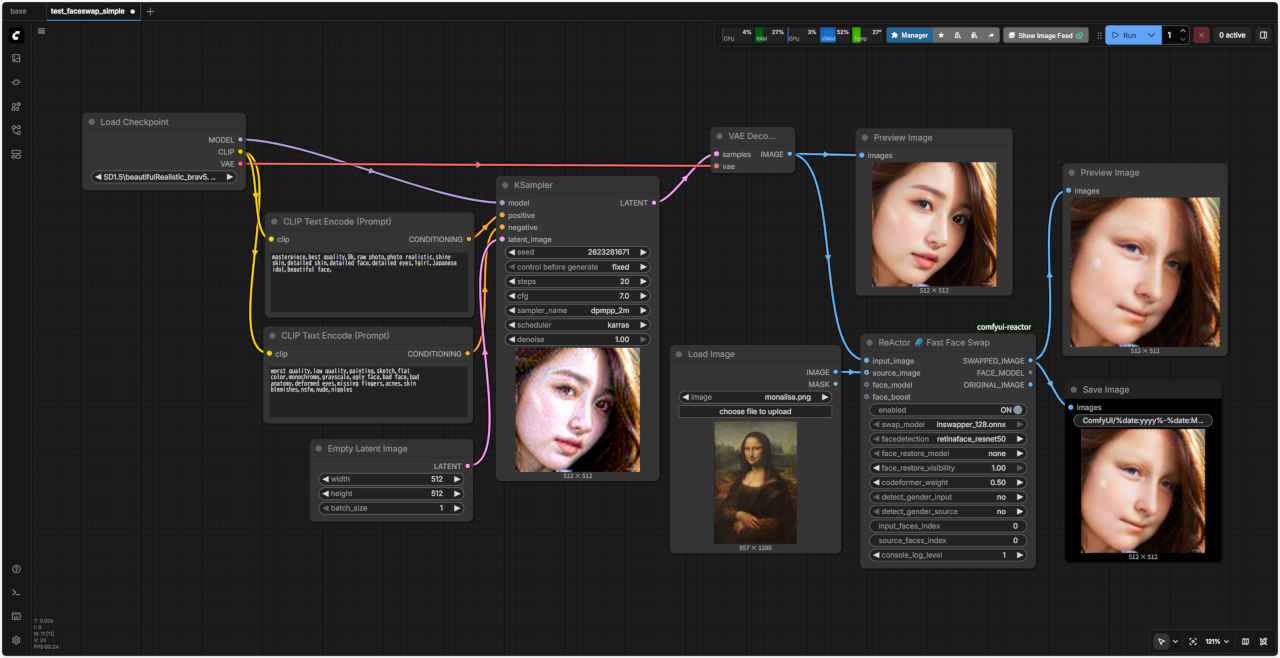 顔を変える「ReActor」『ComfyUI-ReActor』