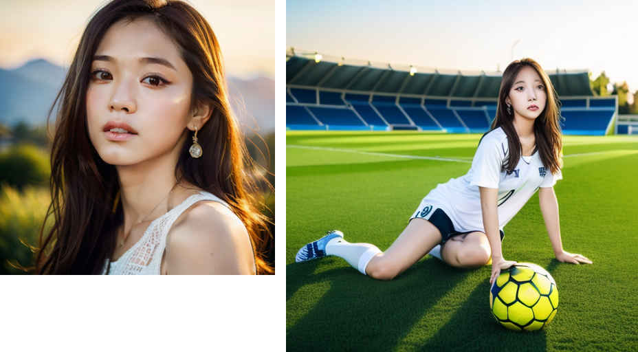 ③ プロンプトを入力(例: a woman playing soccer, stadium, grass field, dribbling