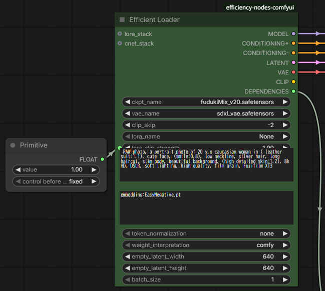 ②「Efficient Loder」ノードの「ckpt_name」「vae_name」を指定する