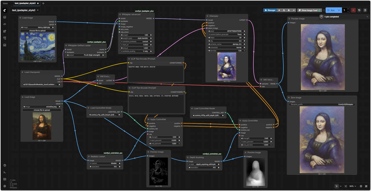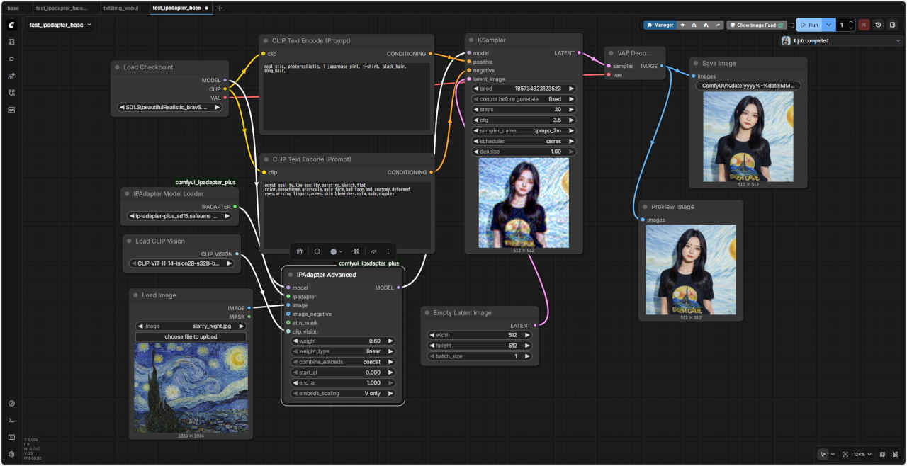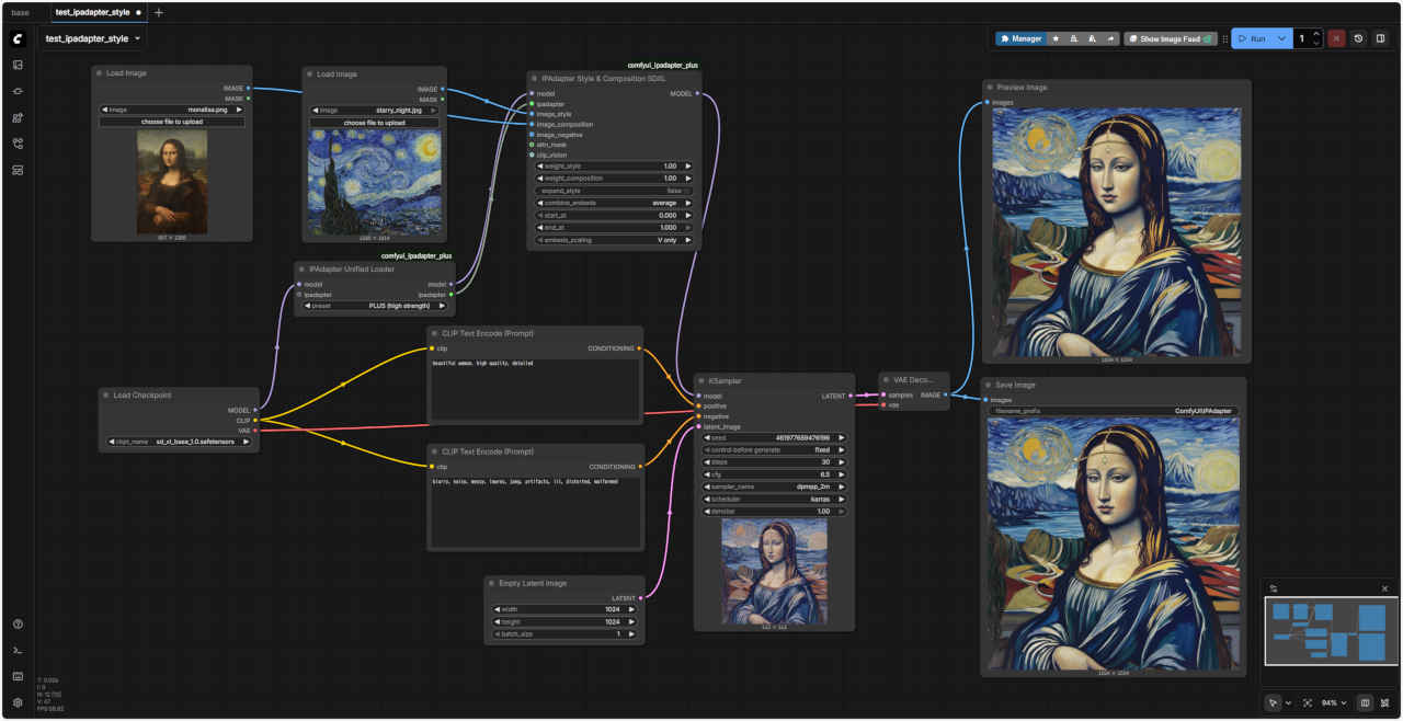 ①「test_ipadapter_simple.json」ワークフローを別名「test_ipadapter_style.json」で保存して使用する