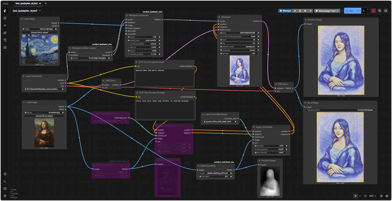 ②「test_ipadapter_style.json」をロードし変更を加える