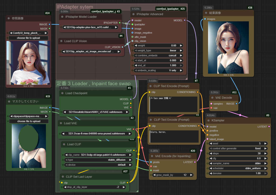 ① サイト ComfyUI.Tokyo: SD1.5 IPAdapter face swap のワークフローを参考にする