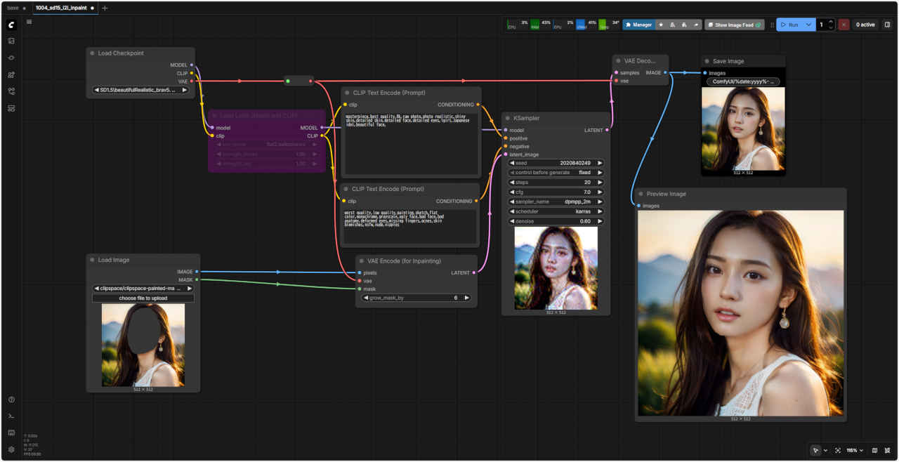 | 1004_sd15_i2i_inpaint | SD15モデル Inpaintワークフロー | 00:02.14 | 00:02.57 | 00:04.09 | 00:05.85 | 00:26.25 | 03:09.29 | 02:56.59 |
