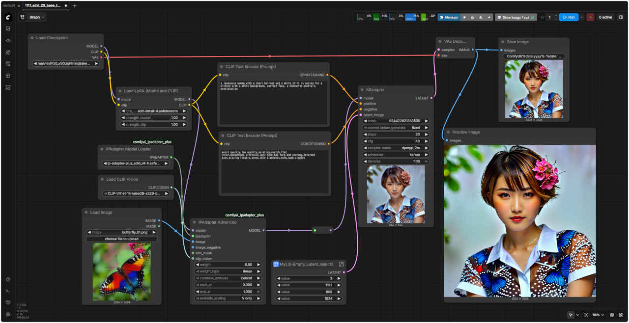 | ・IPAdapterは、テキストプロンプトに加えて参照画像を入力することで、AIによる画像生成をより精密に制御する技術。 ・画像のスタイル、特定の視覚要素、全体的な構図など、プロンプトでは表現しきれないニュアンスをAIに伝え、生成画像の品質、一貫性、再現性を向上させる |