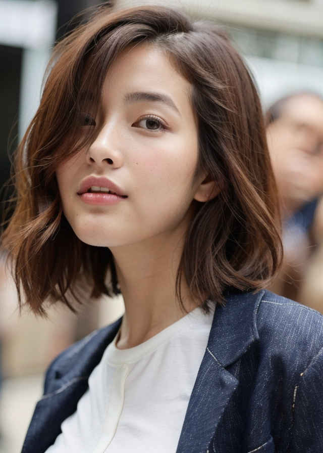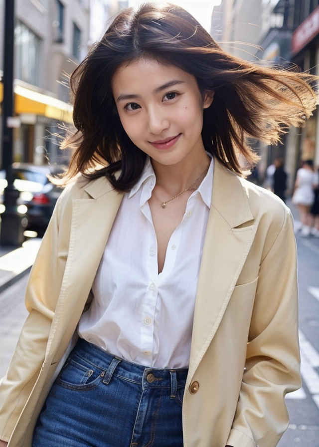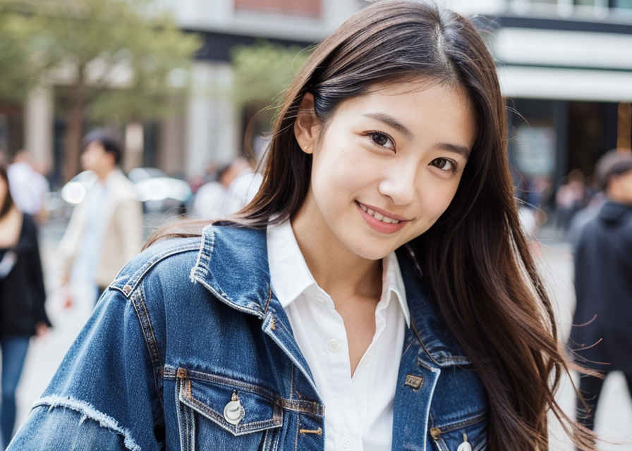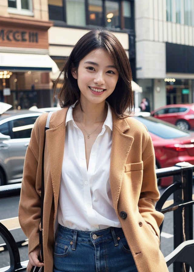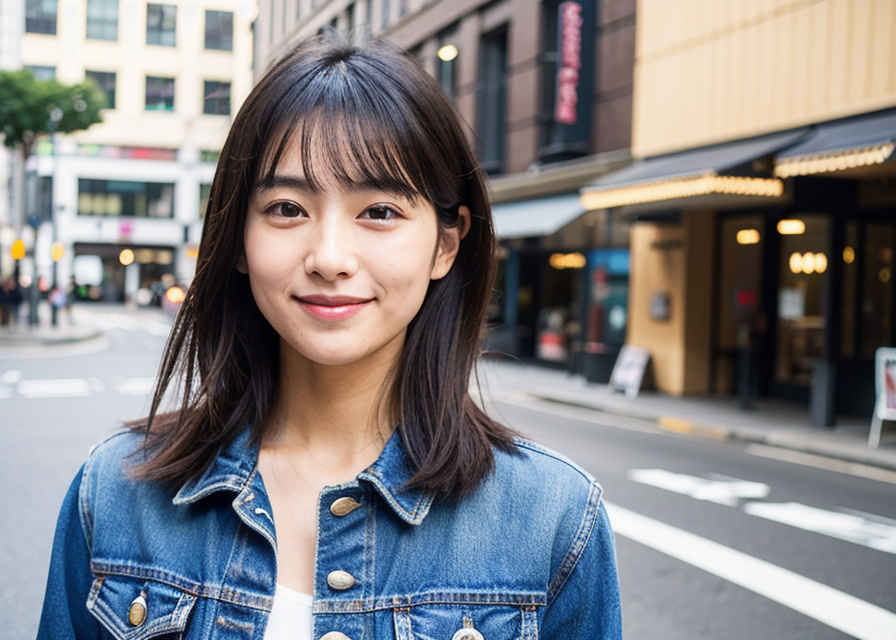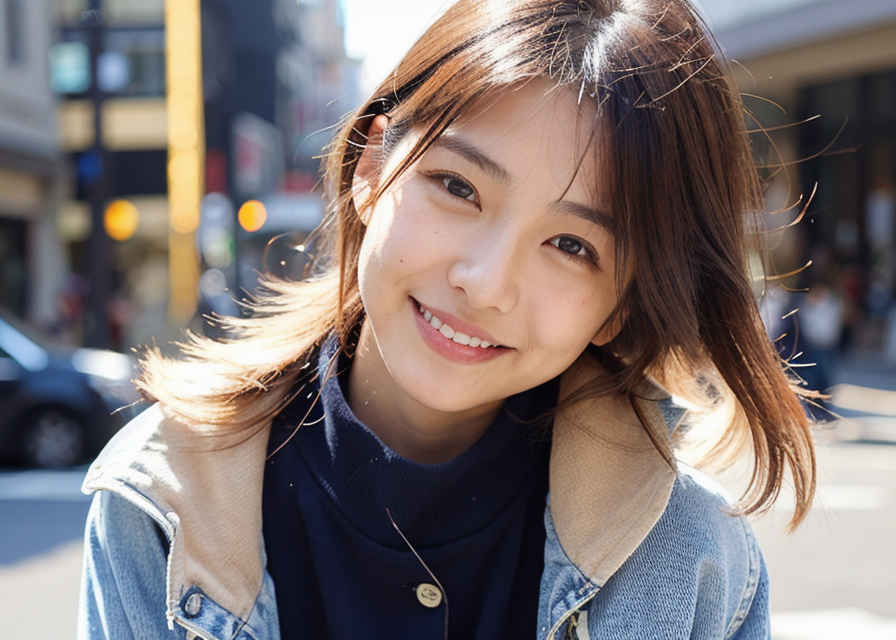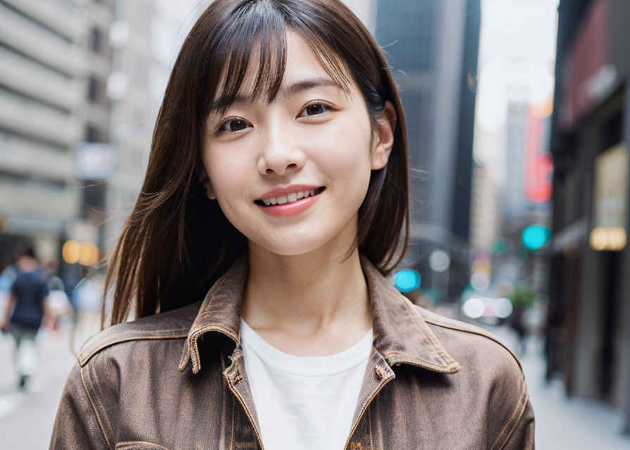 | 1人の日本人女性、30代、リアル、写真、かわいい、見る人を見ている、軽い笑顔、光沢のある輝く肌、美しい肌、色白、白い肌、詳細な美しい顔、光沢のある唇、ジャケット、ジーンズ、シャツ、屋外、街中 | |