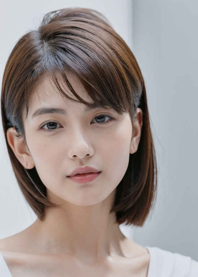 | Prompt ② | a woman with a short haircut and a white shirt is posing for a picture with a white background, perfect face, a character portrait, precisionism |