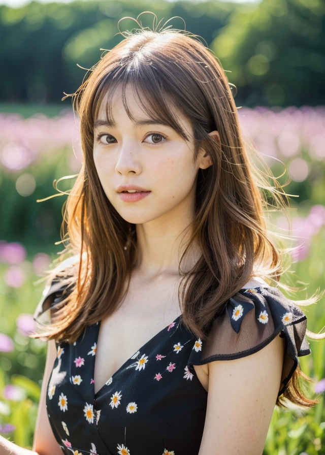 | Prompt ③ | high resolution, looking at viewer, Japanese 1girl, 30yo, beautiful face, medium hair, in beautiful dress with focus on face, background is meadow |
