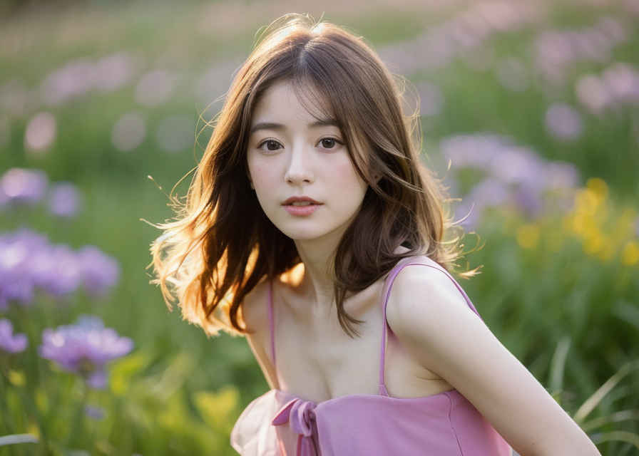 | Prompt ⑱ | 1 japanese girl, 30yo, cute, shy smile, realistic skin texture, long dress, face focus, light on face, in the meadow, depth of field, sunlight, |
