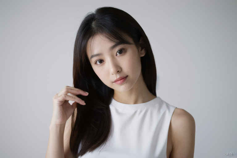 | Prompt ⑳ | Best quality, 1 japanese beautiful woman, wearing white tunk top, 35mm lens, f/1.8, looking at viewer, white background |