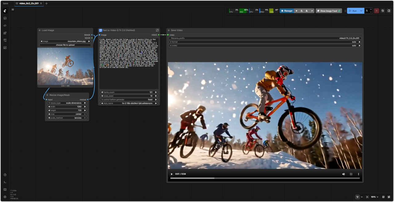 | 102_I2V_LTX2_base_distilled.json | 静止画から動画(改訂) | 01:28.60 | 04:59.94 | 05:35.99 | 13:54.88 | × | × | × | |