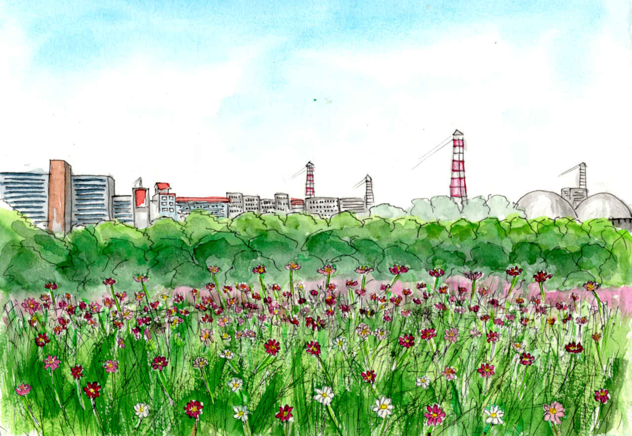 水彩画から写真画像を生成(水彩画 提供:桶川秀次 氏)