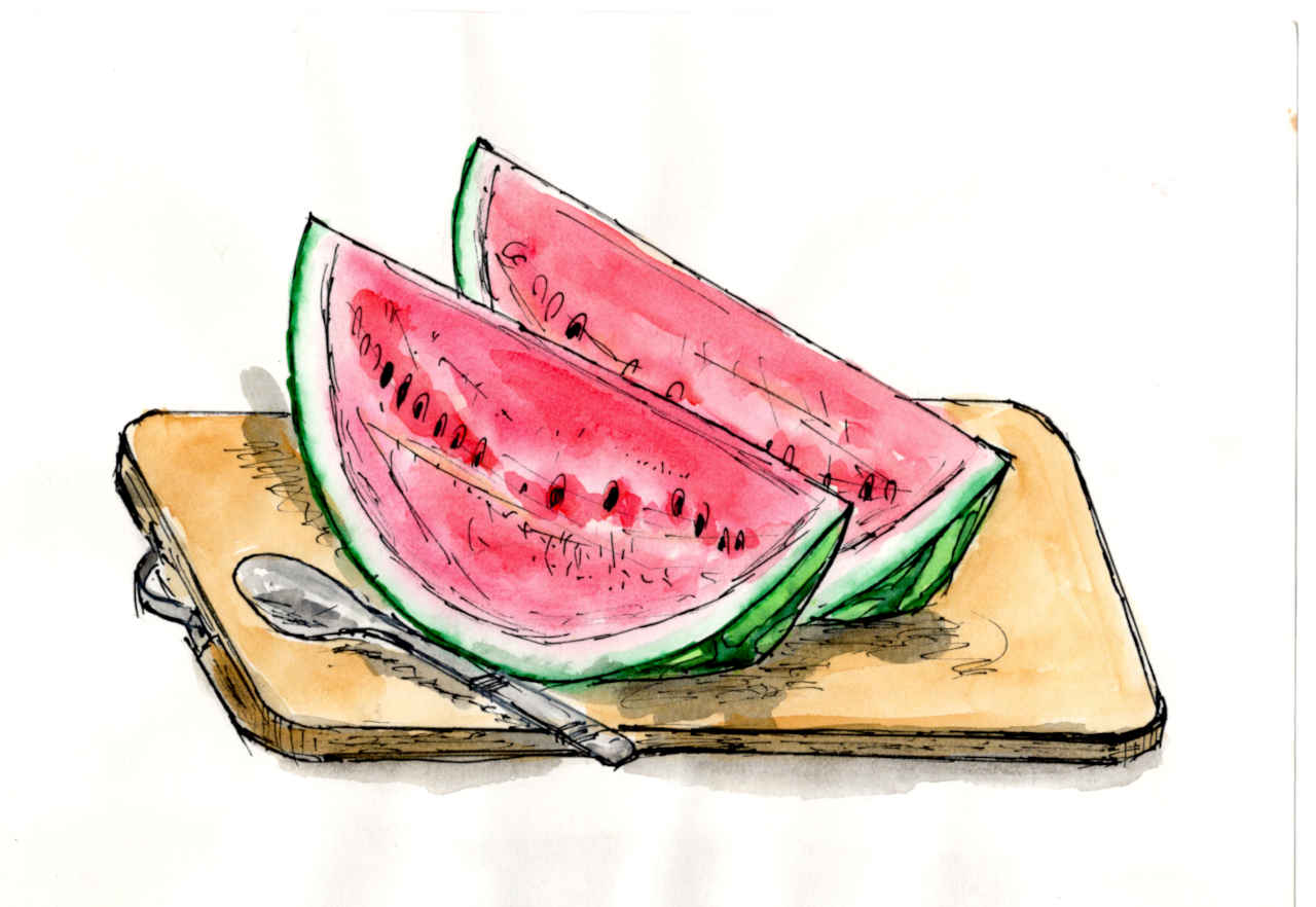 元の写真と人の描いた水彩画1(写真/水彩画 提供:桶川秀次 氏)