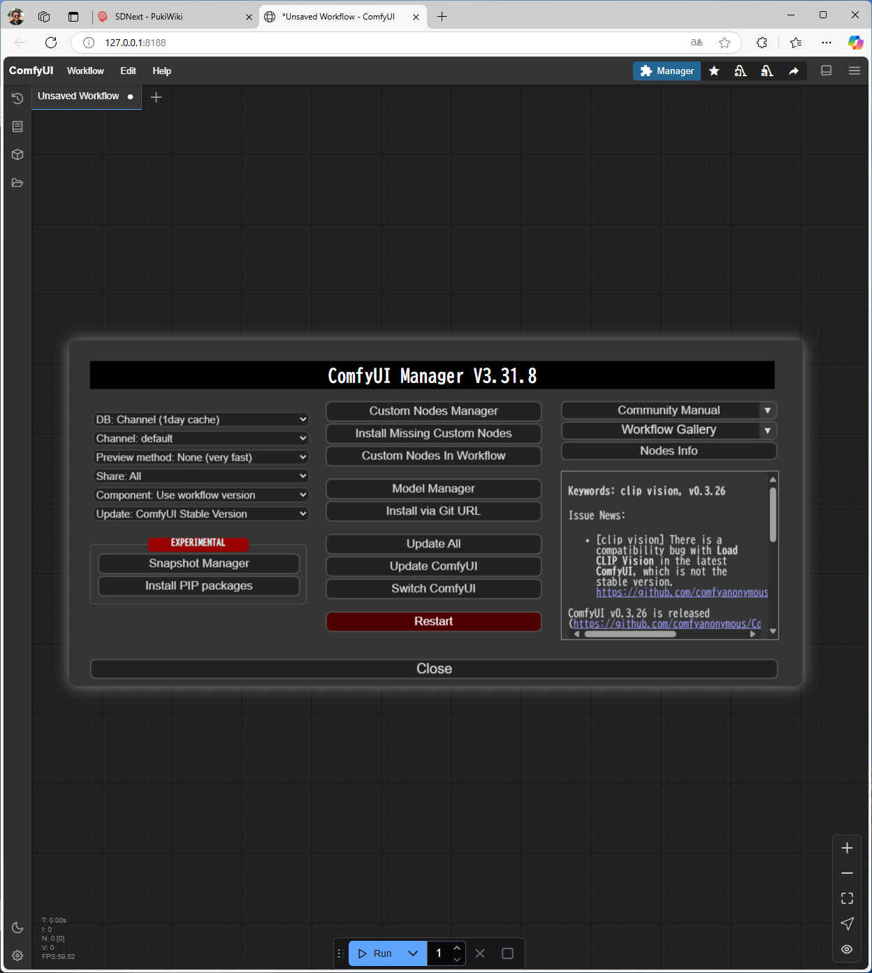 「ComfyUI」は現在、毎日数回の更新が行われている活発なプロジェクトであり本サイト上の情報は確認時点のものであることに注意すること。