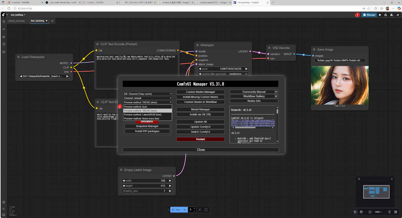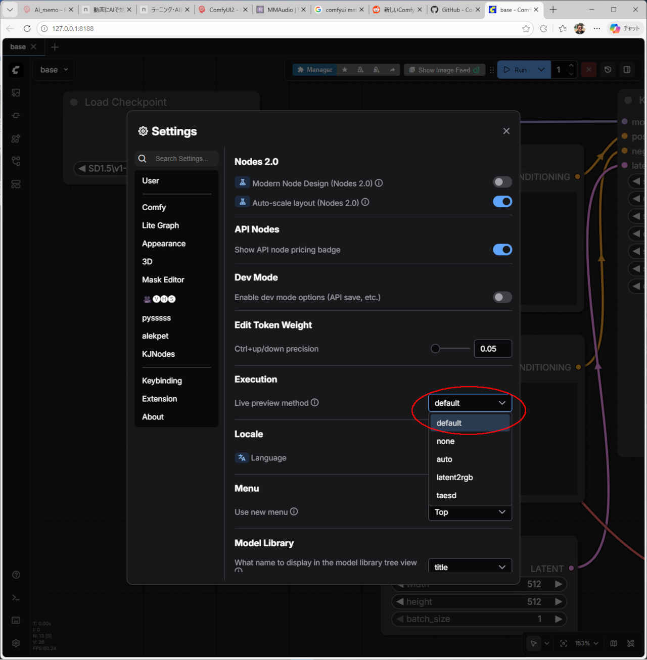 ②「ComfyUI Maneger」ダイアログから「Preview method」を指定する