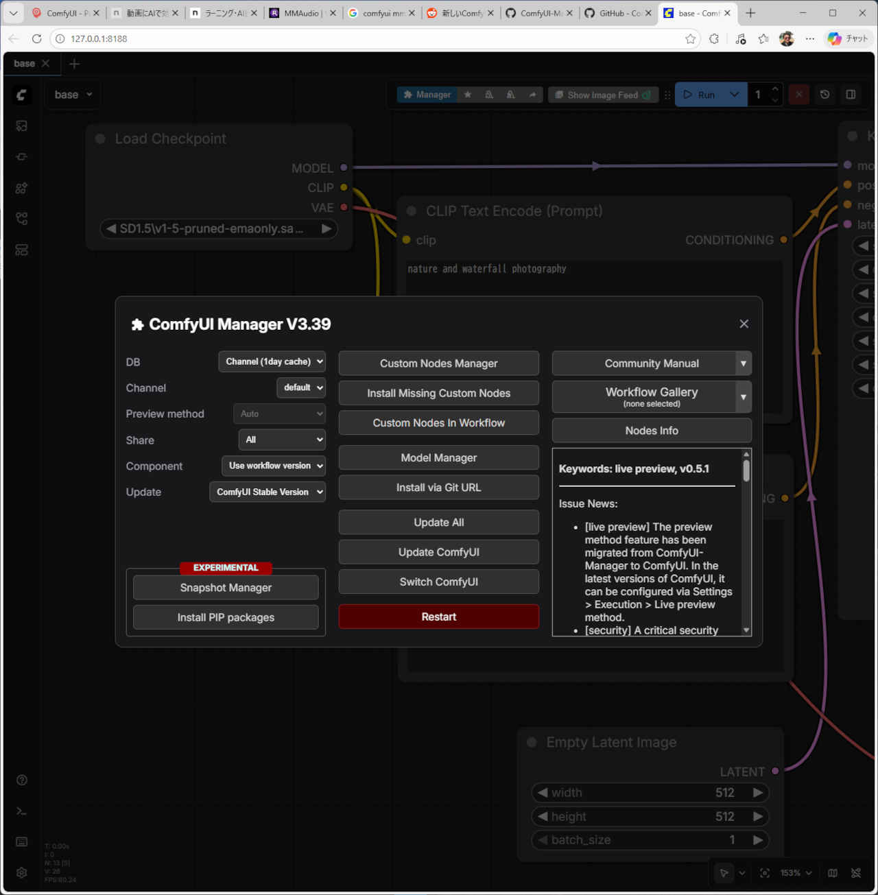 2. 必須のパッケージ「ComfyUI Manager」をインストールする