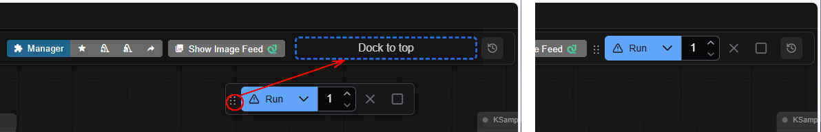 ①「Run」ボタンが作業途中で行方不明になることがあるので上部メニューに固定する