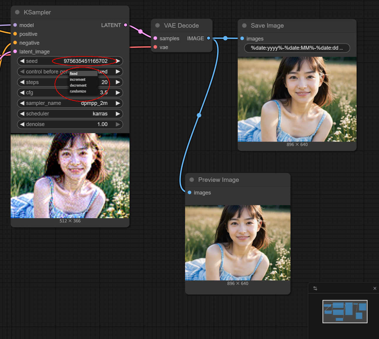 シードが気に入ったら、固定に変更して、そのシードで生成を続る