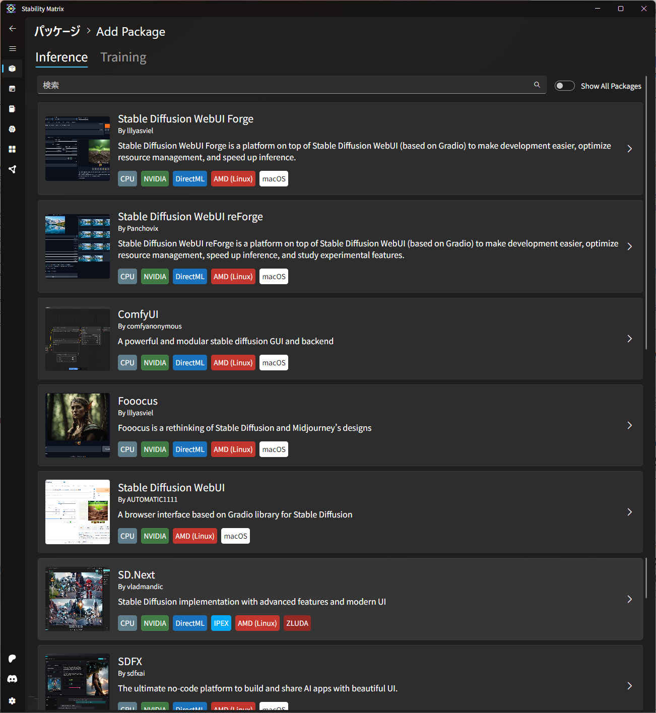 1. 「Stability Matrix」画面下の「+ パッケージの追加」を押す