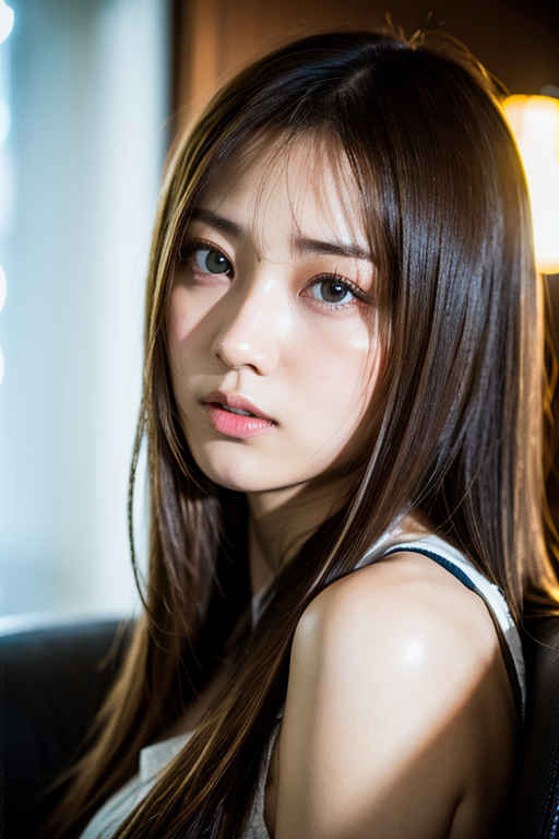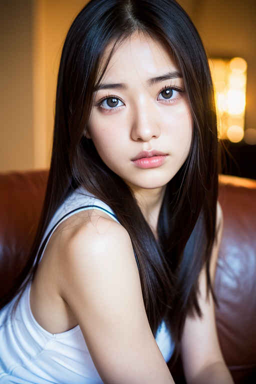 | 最高品質、超高解像度、(フォトリアリスティック:1.4)、RAW写真、日本人女の子1人、ソロ、かわいい、(瞳孔、目のライト)、詳細な美しい顔、(ロングヘア)、ソファに座る |