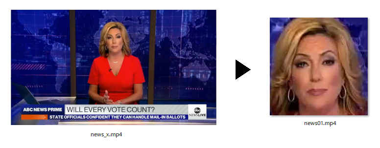 ffmpeg -i ./sample/videos/news_x.mp4 -ss 00:00:00.00 -t 00:00:10 -filter:v "crop=200:200:550:80" -async 1 news01.mp4