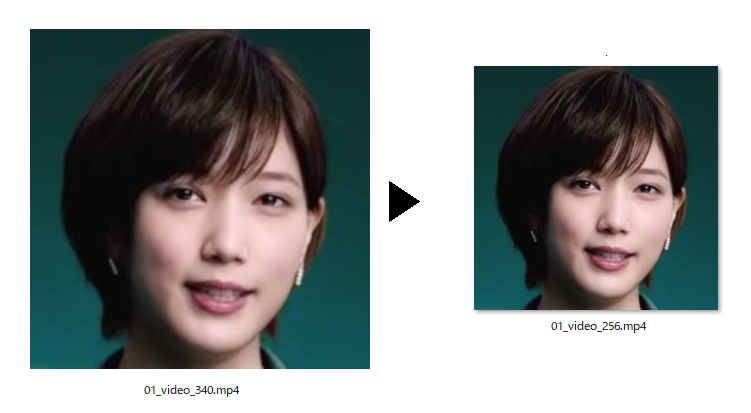 ffmpeg -i 01_video_340.mp4 -s 256:256 -q 2 01_video_256.mp4