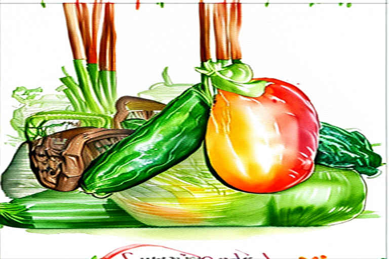 かごの中の野菜、水彩画、白い背景