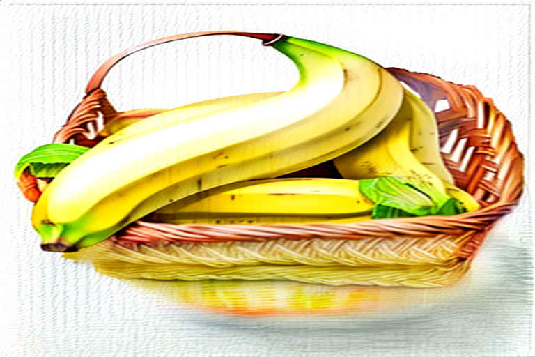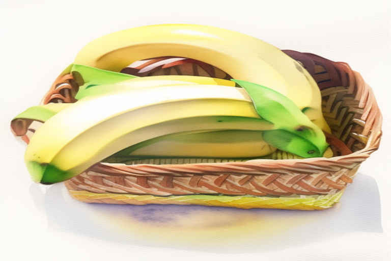 Bananas in a basket, watercolor painting, white background