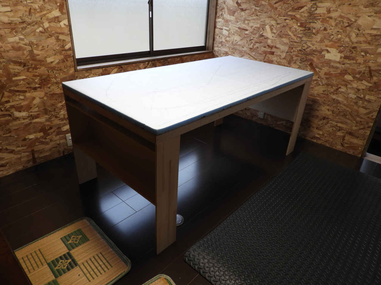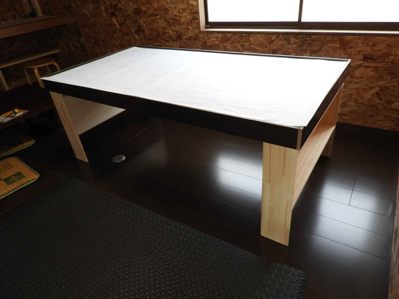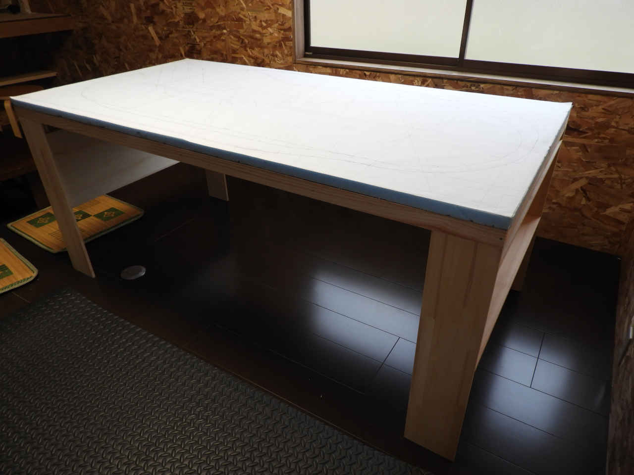 リホームの残材で 1820x910 のベニヤ板に骨組みを作り 30mm のスタイロホームを貼る