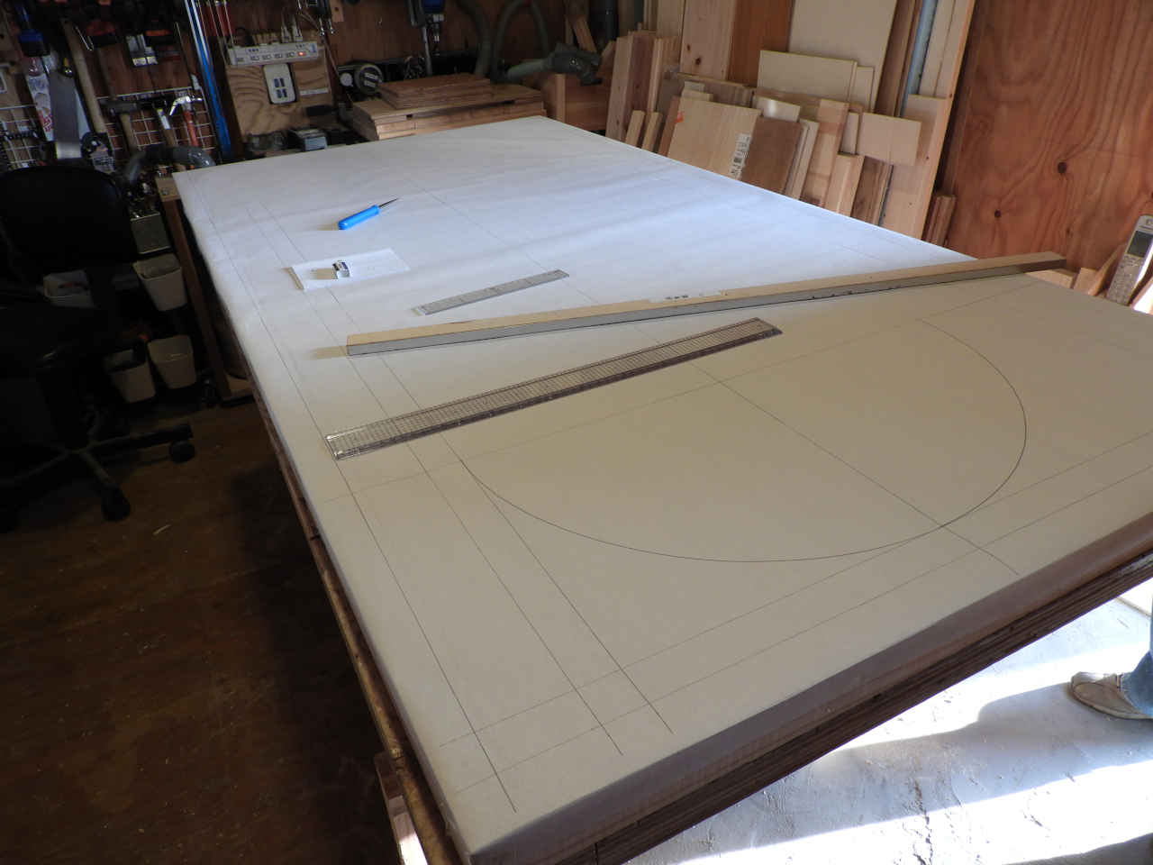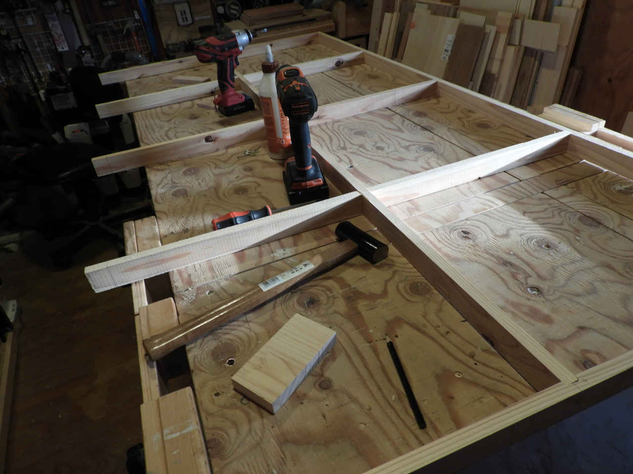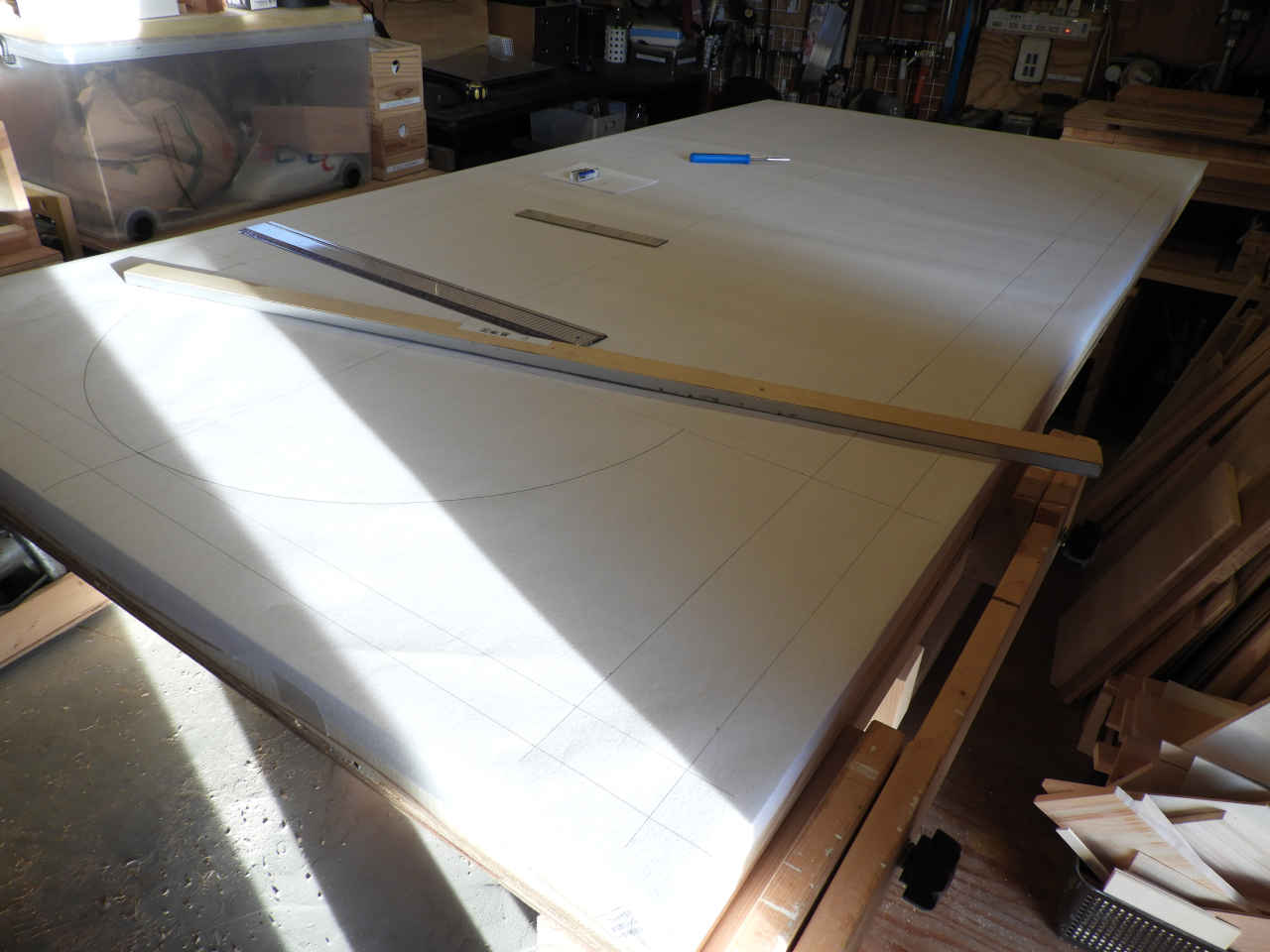 リホームの残材で 1820x910 のベニヤ板に骨組みを作り 30mm のスタイロホームを貼る