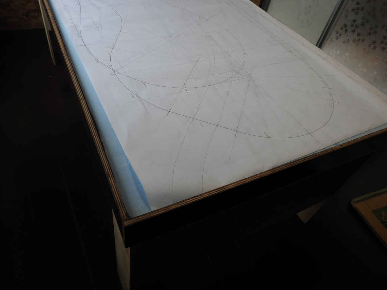 障子紙に「JW-CAD」で書いた 1/10 縮尺のレイアウト図を原寸で書き写す