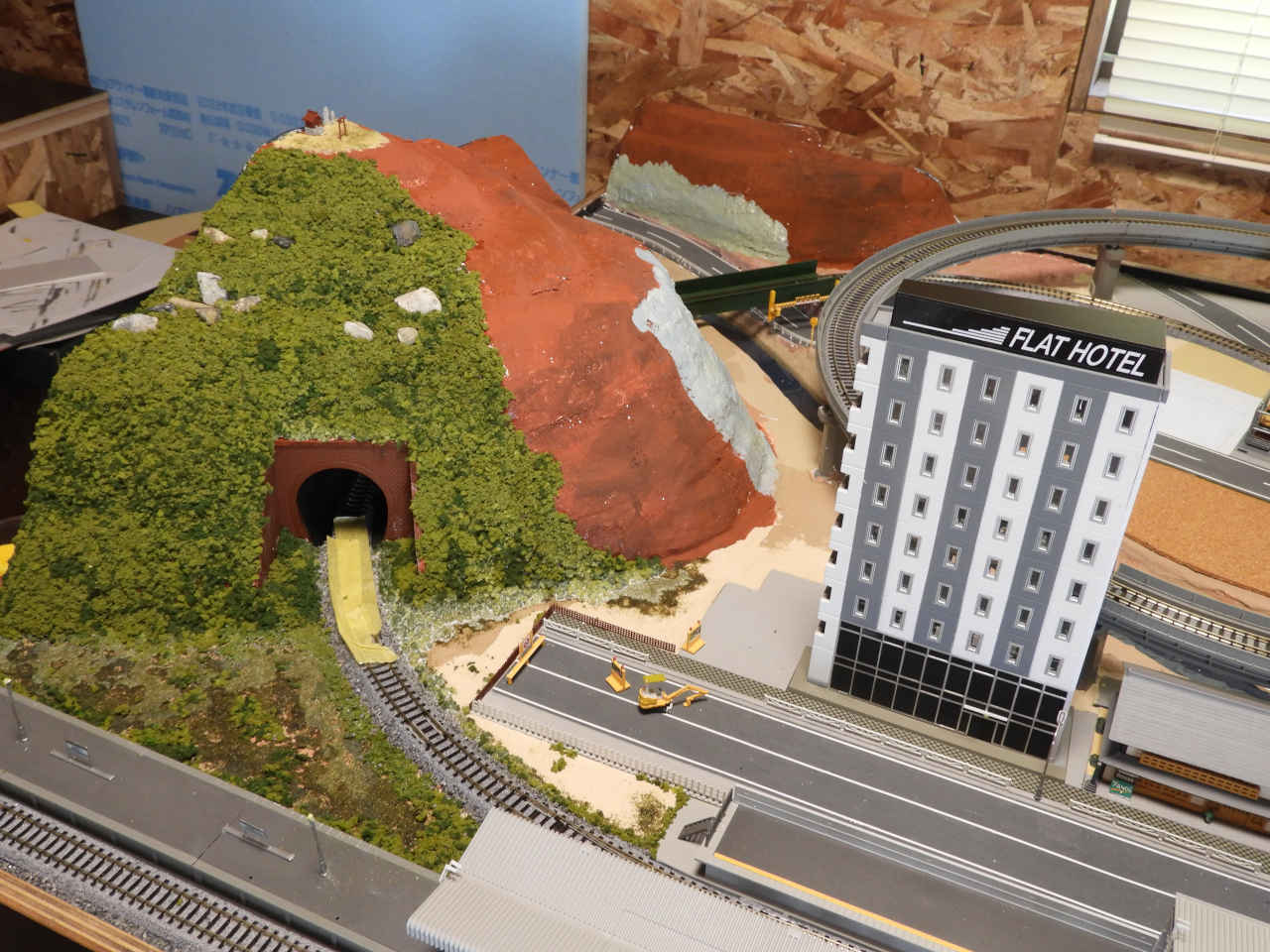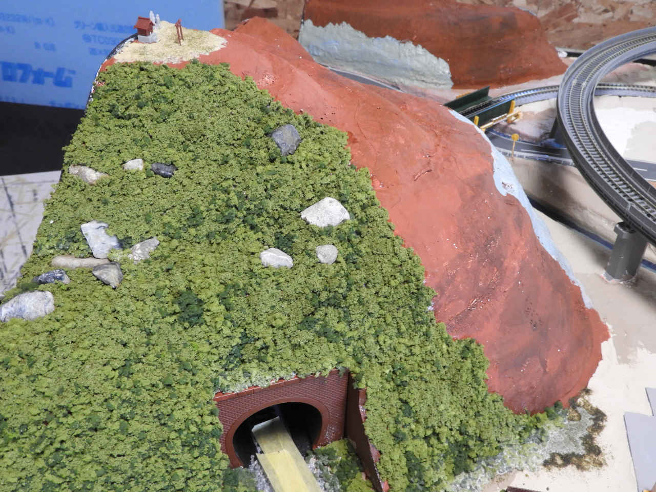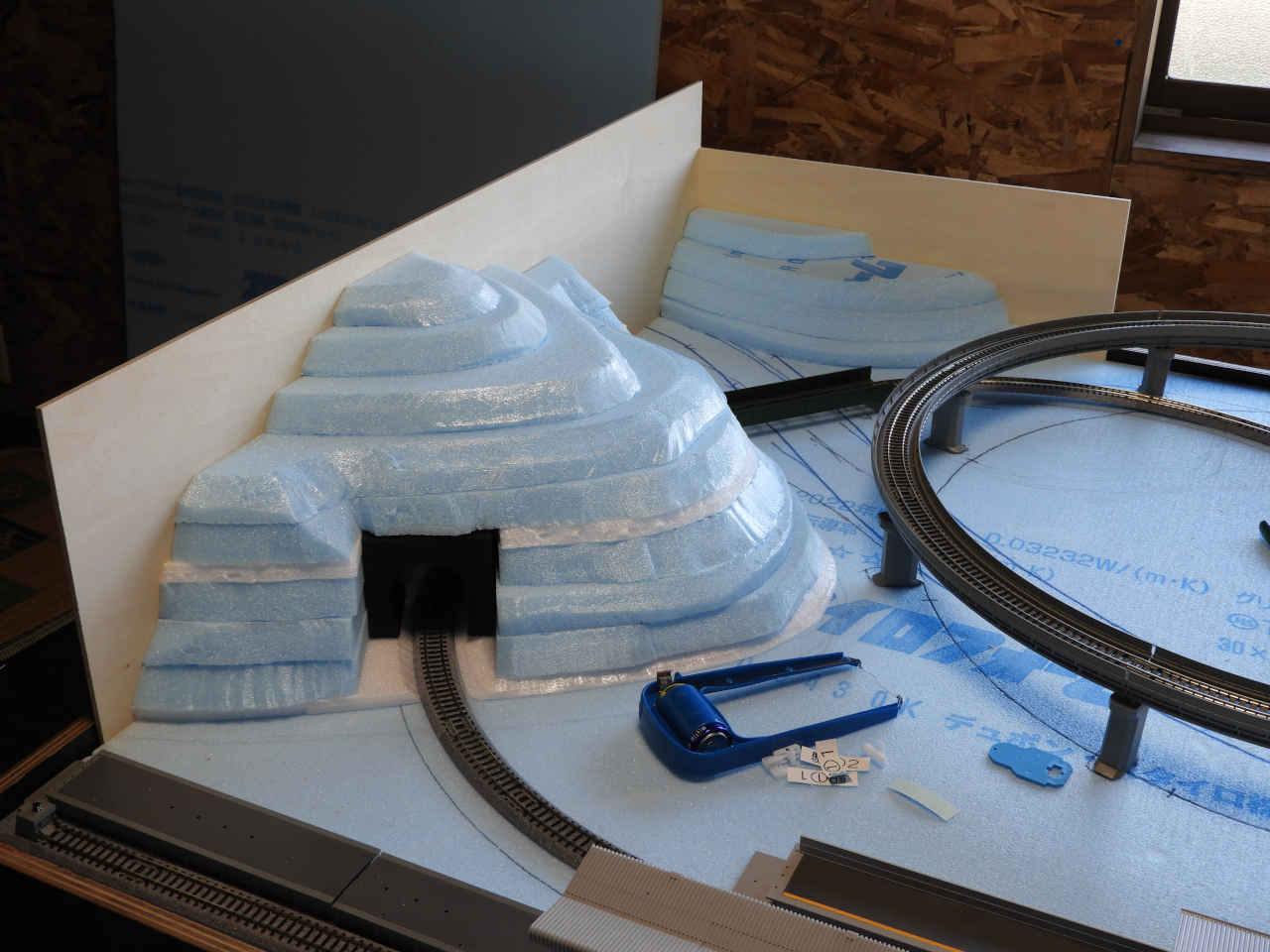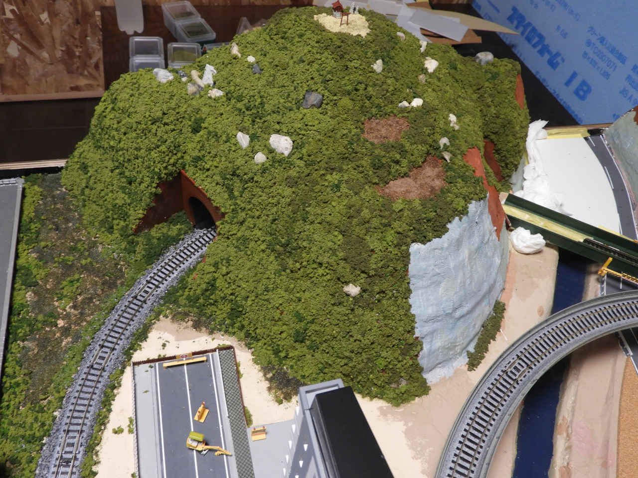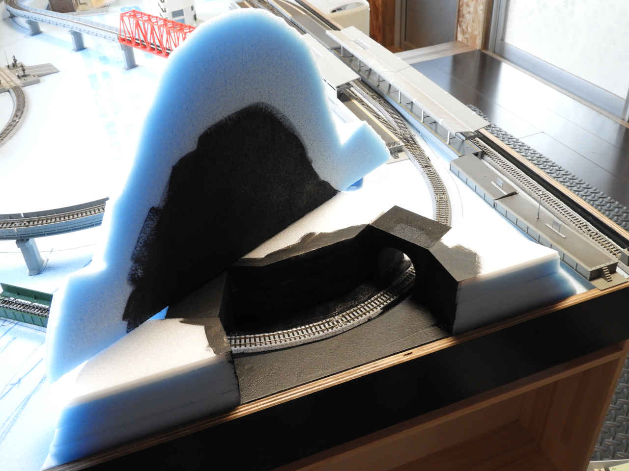 スタイロホームを重ねて山を作り内部を黒に着色。