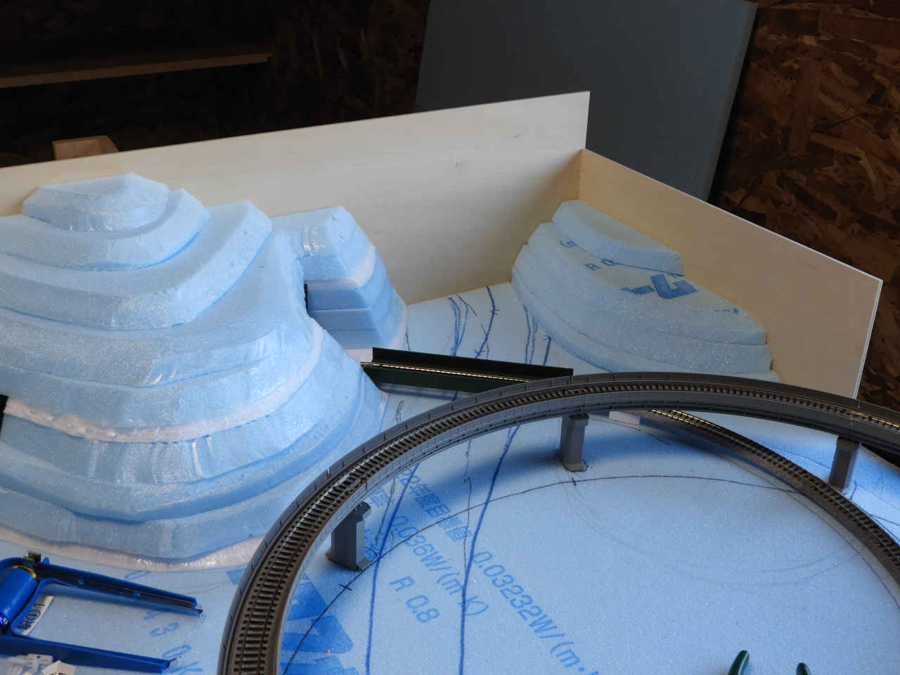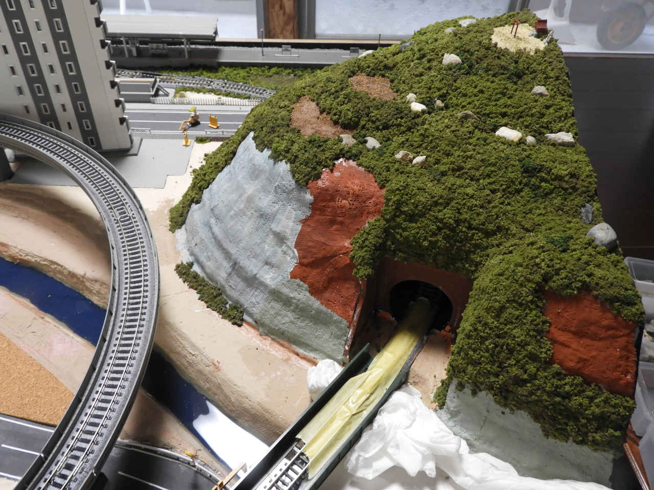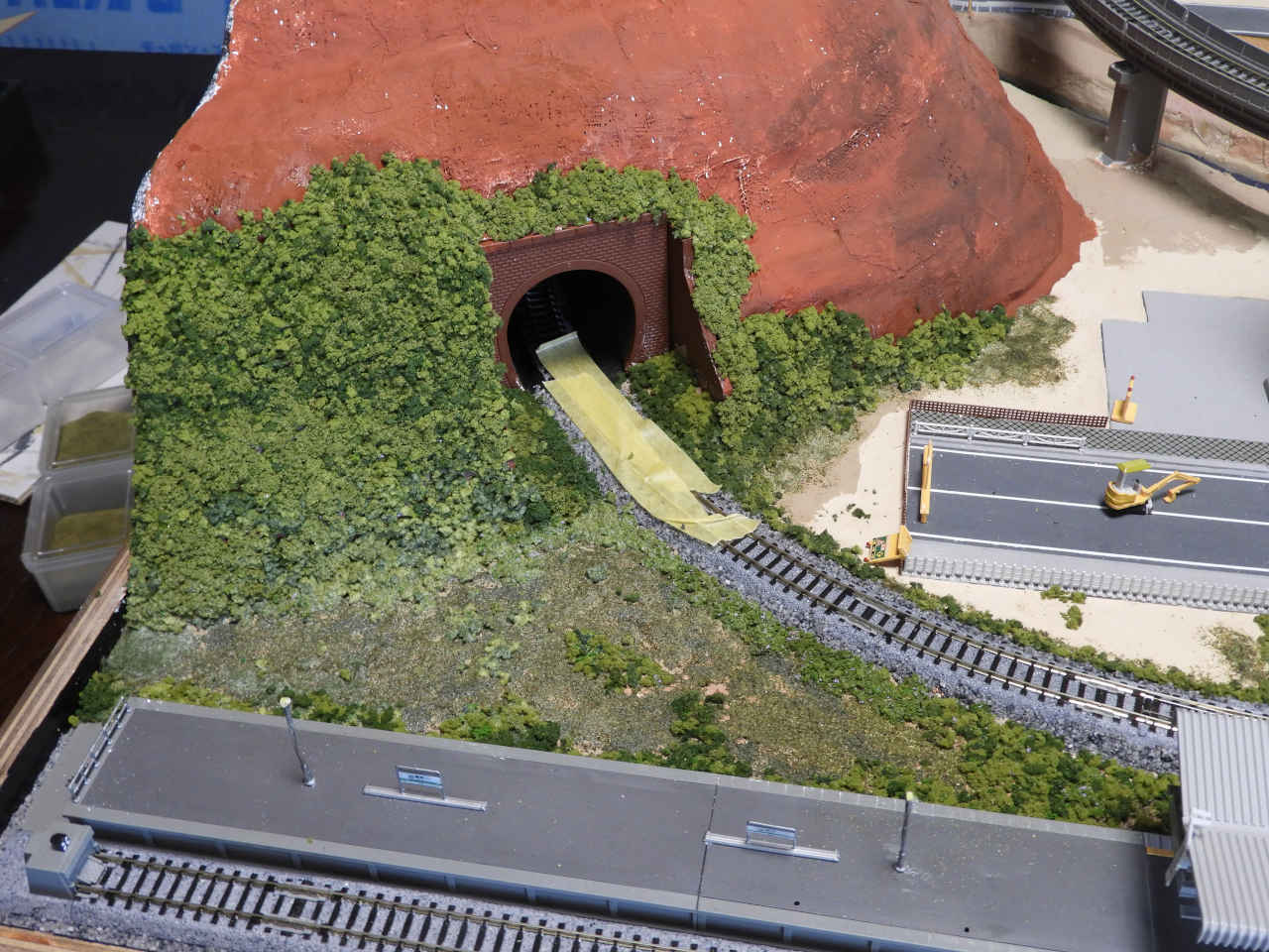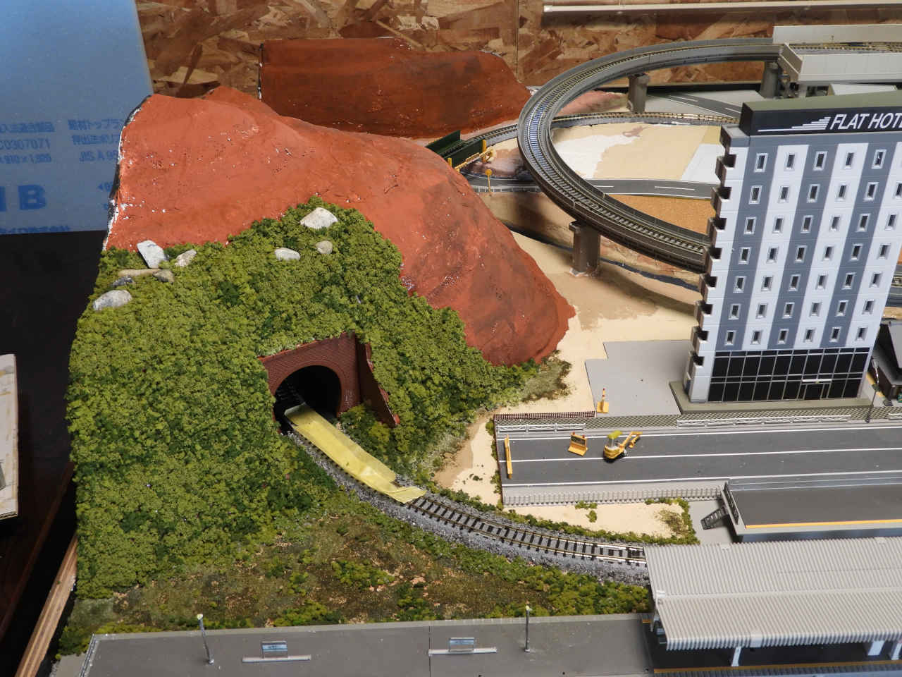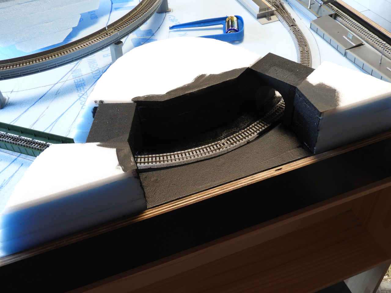 スタイロホームを重ねて山を作り内部を黒に着色。