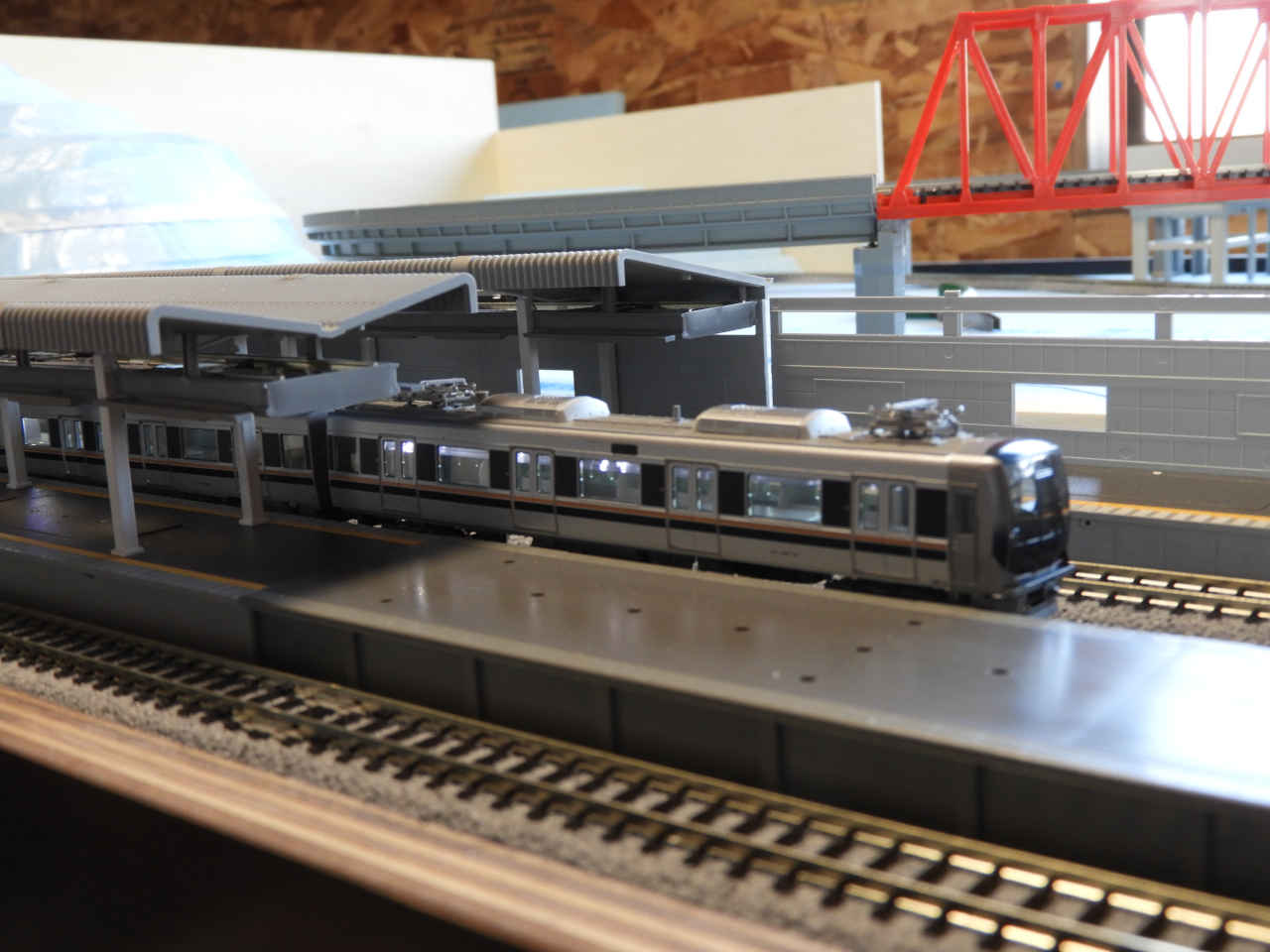 ホームに小物を配置して設置。シールの手持ちから駅名は「諸井駅」とする。