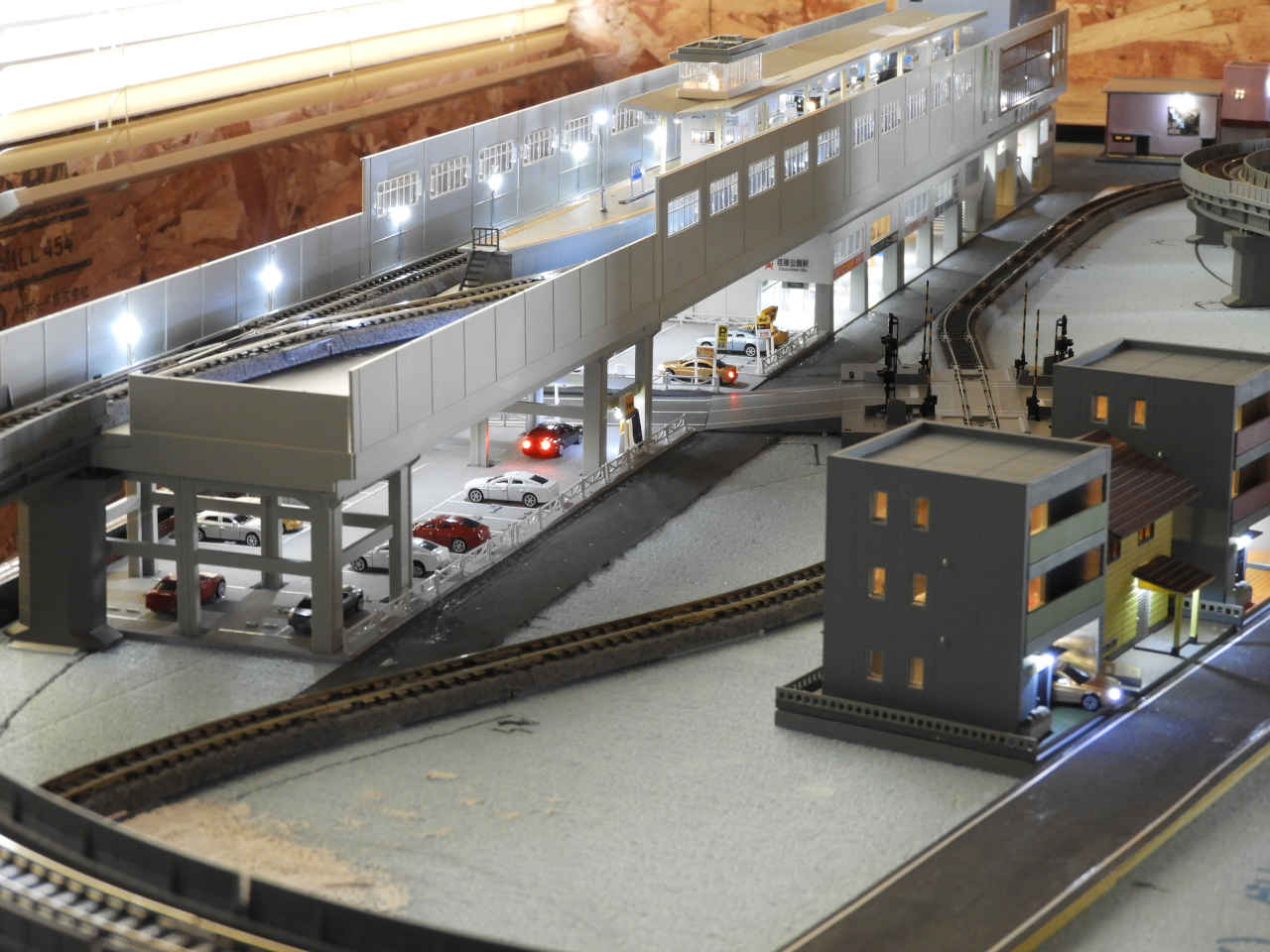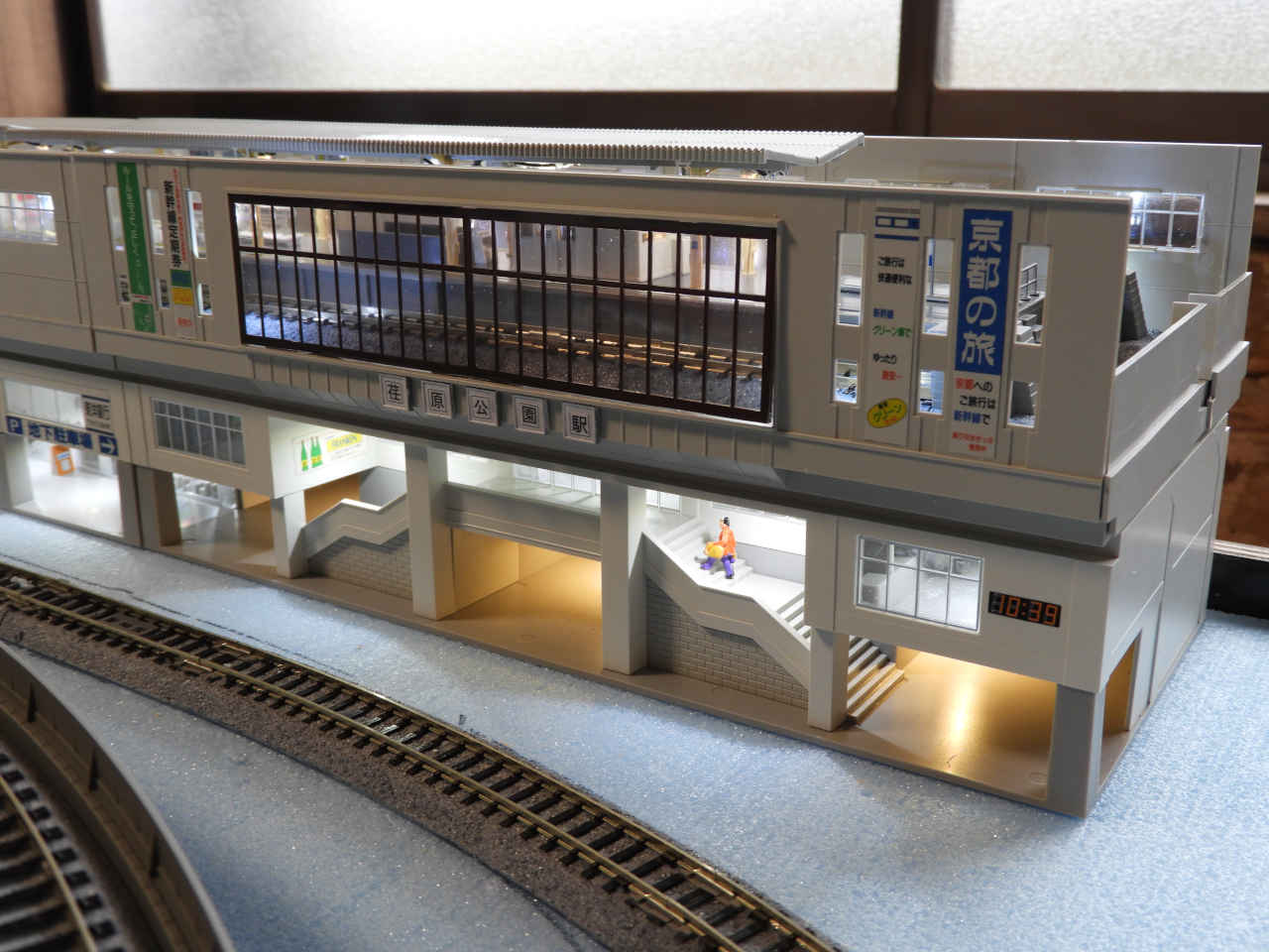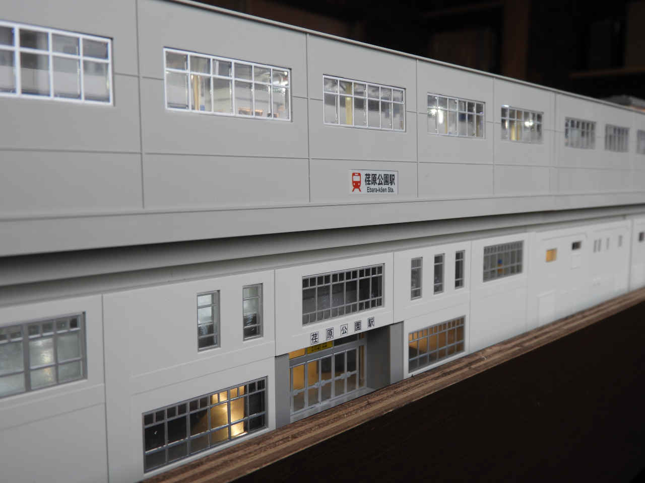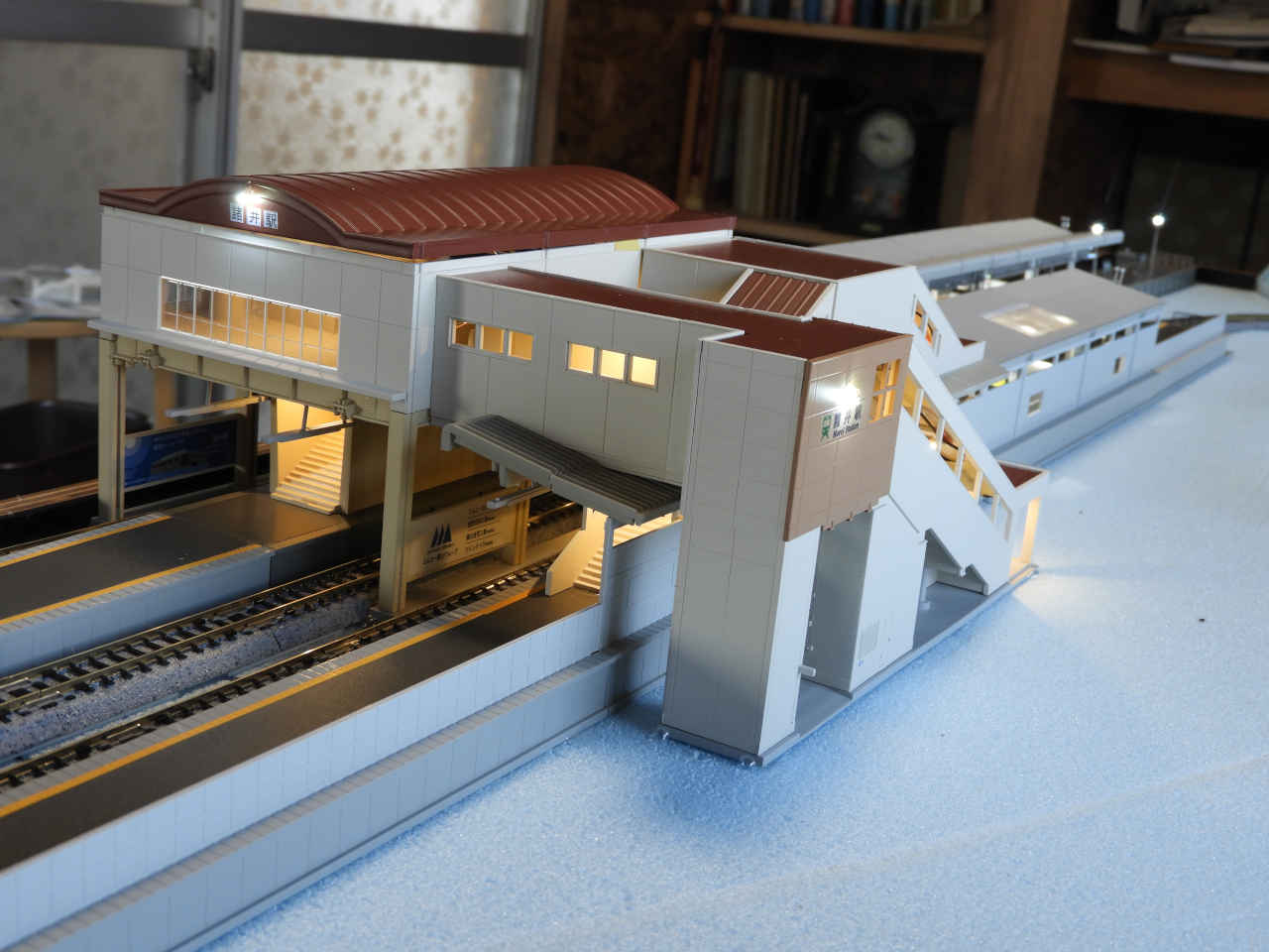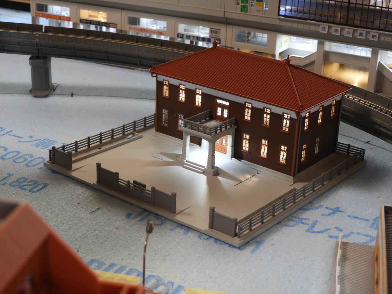 駅舎に照明を入れて設置。