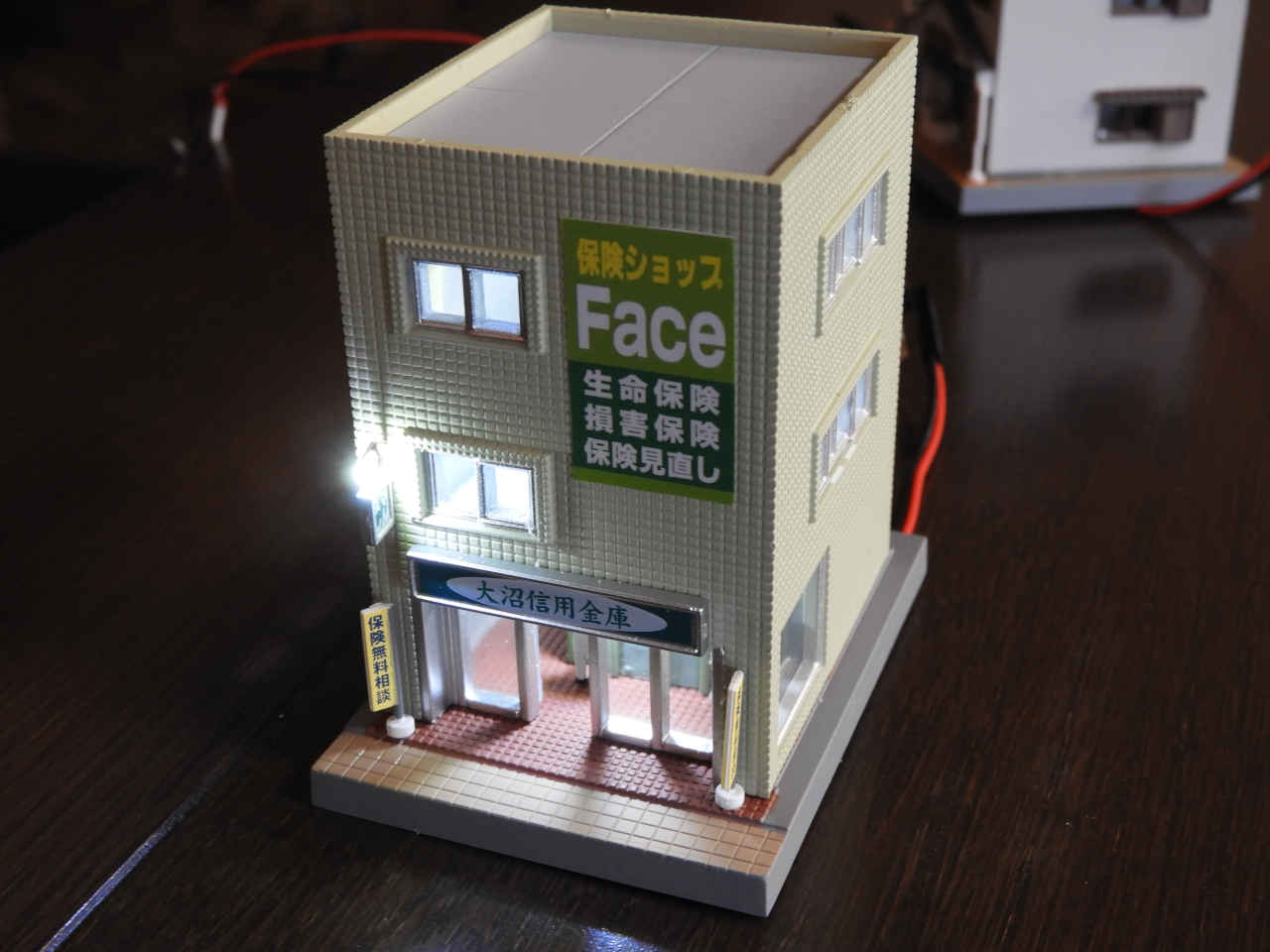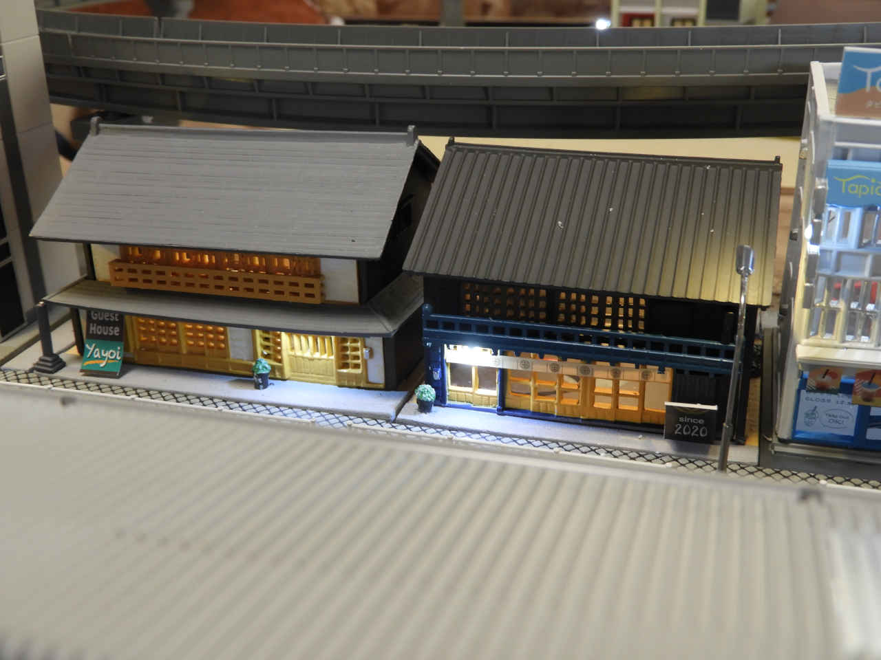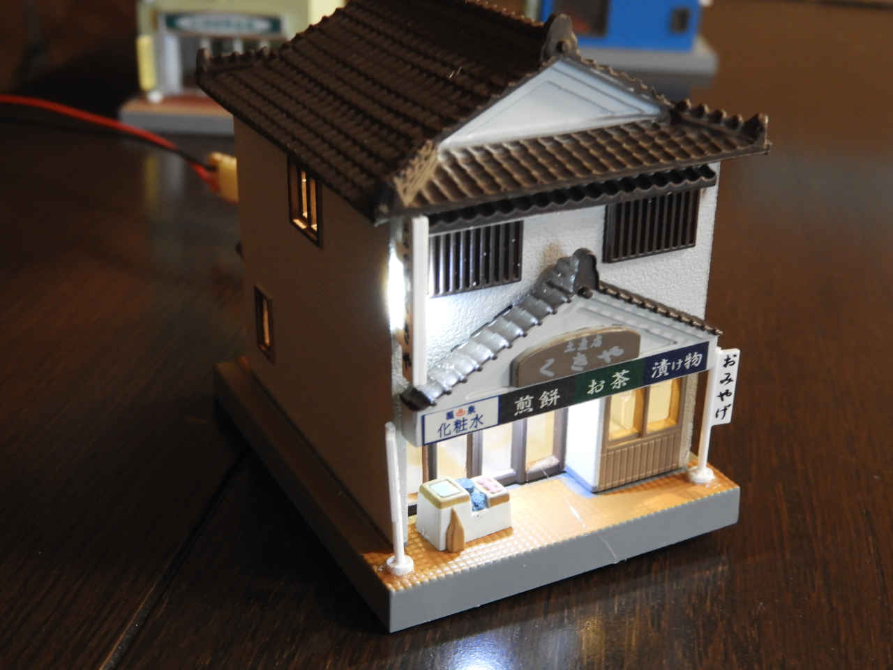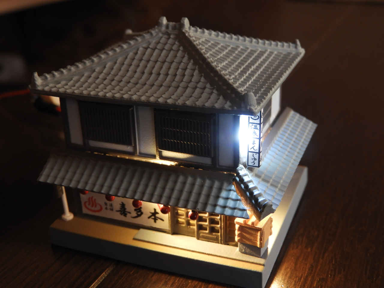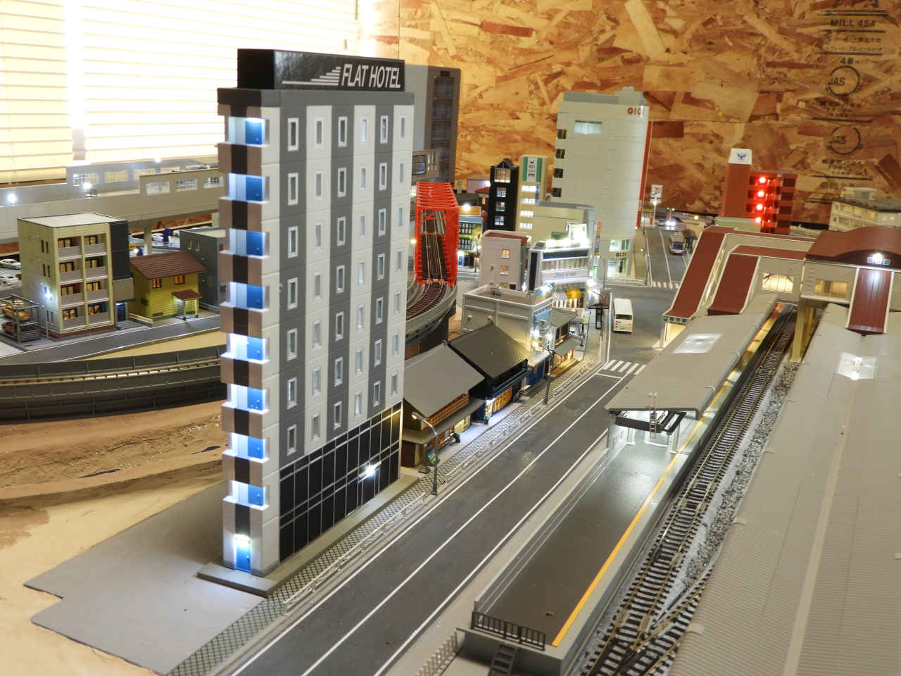 駅舎に照明を入れて設置。