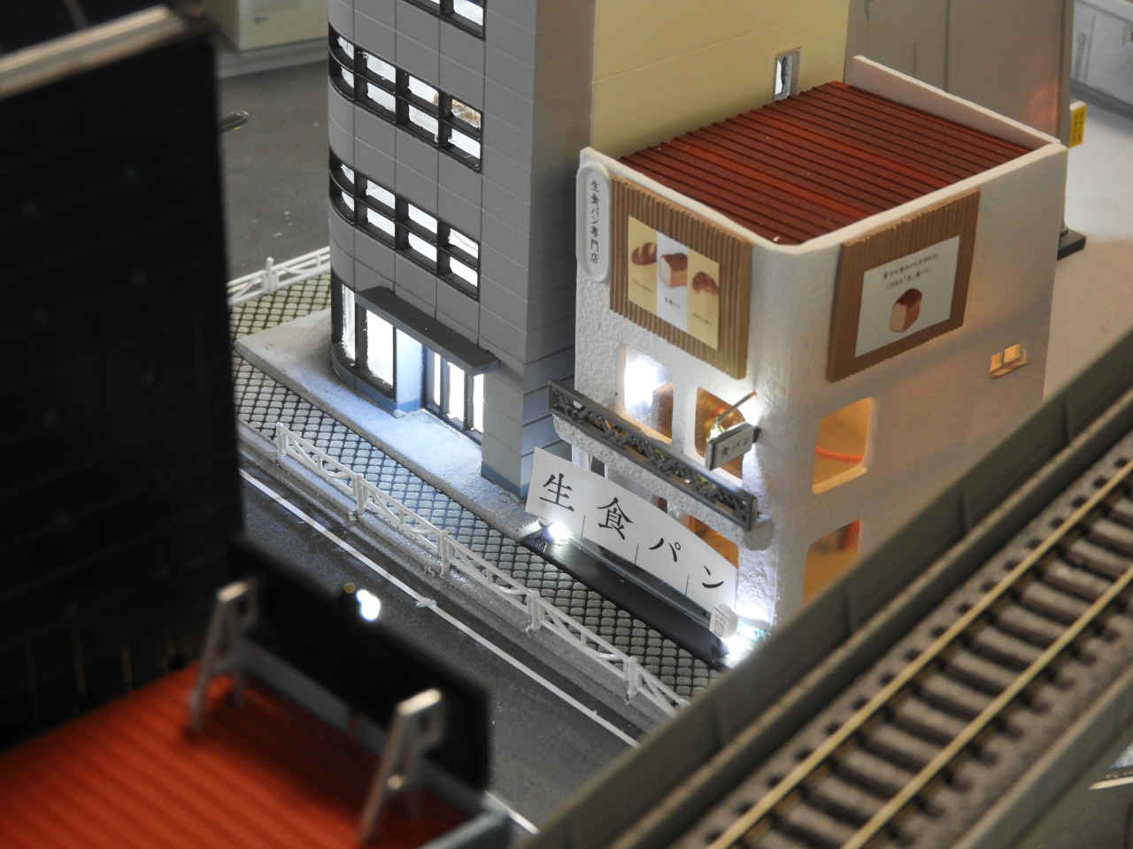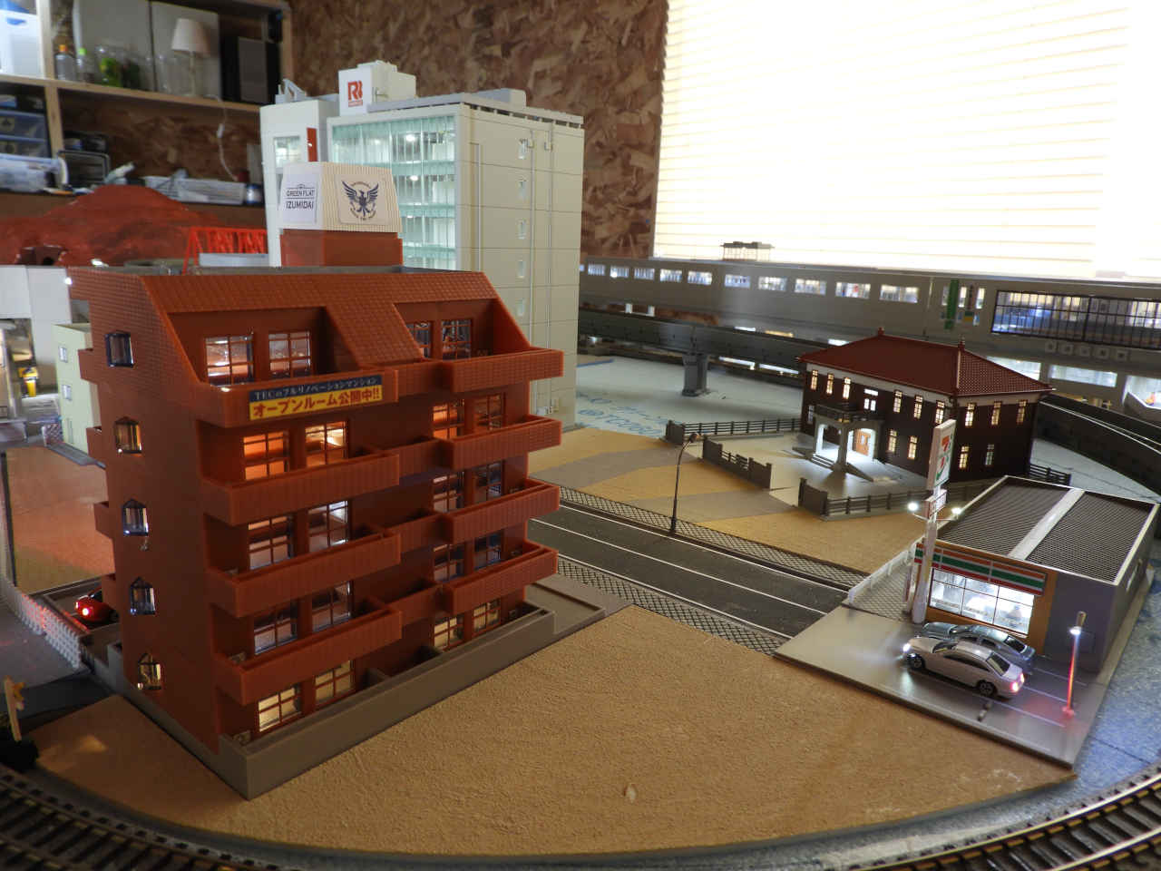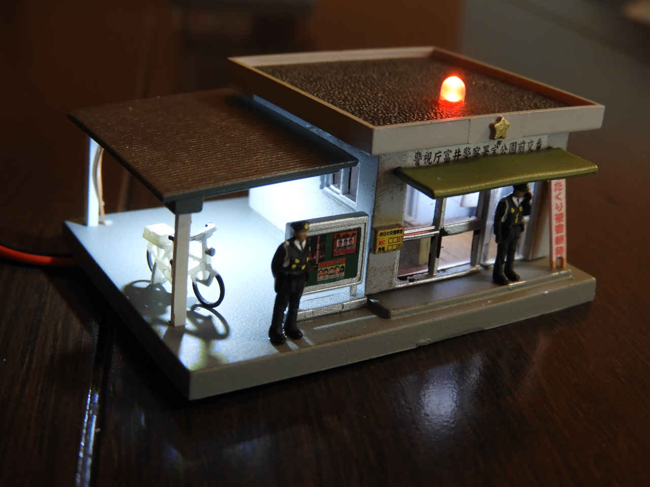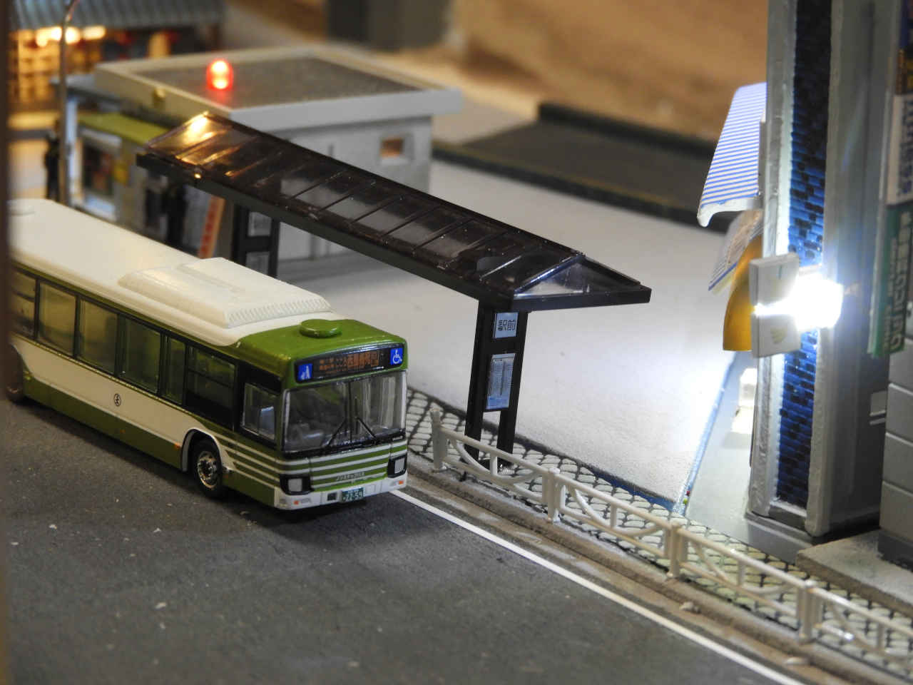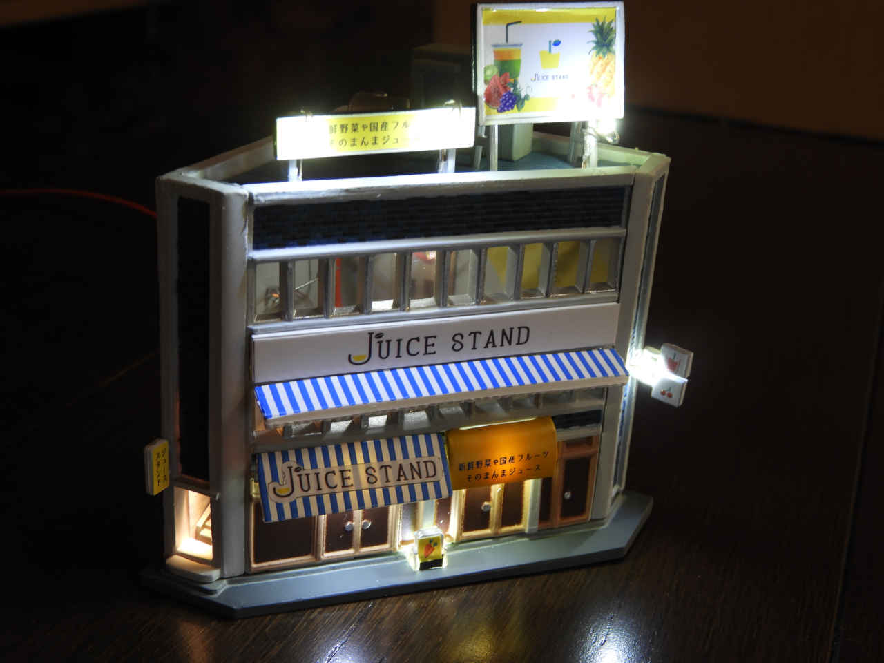 駅舎に照明を入れて設置。