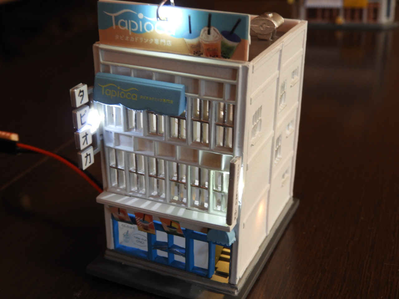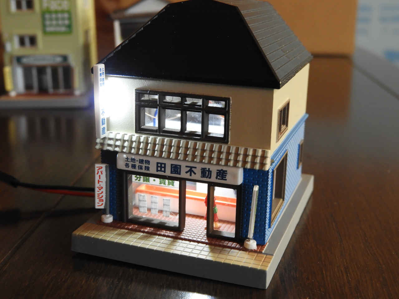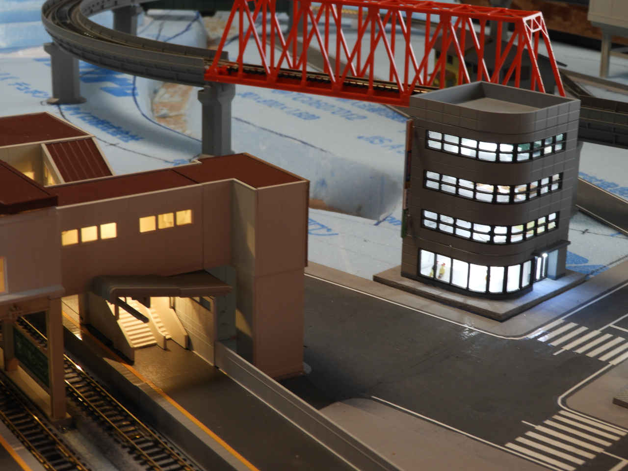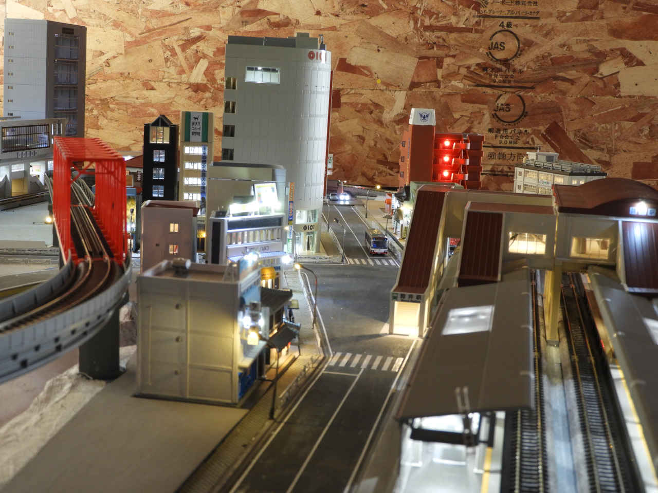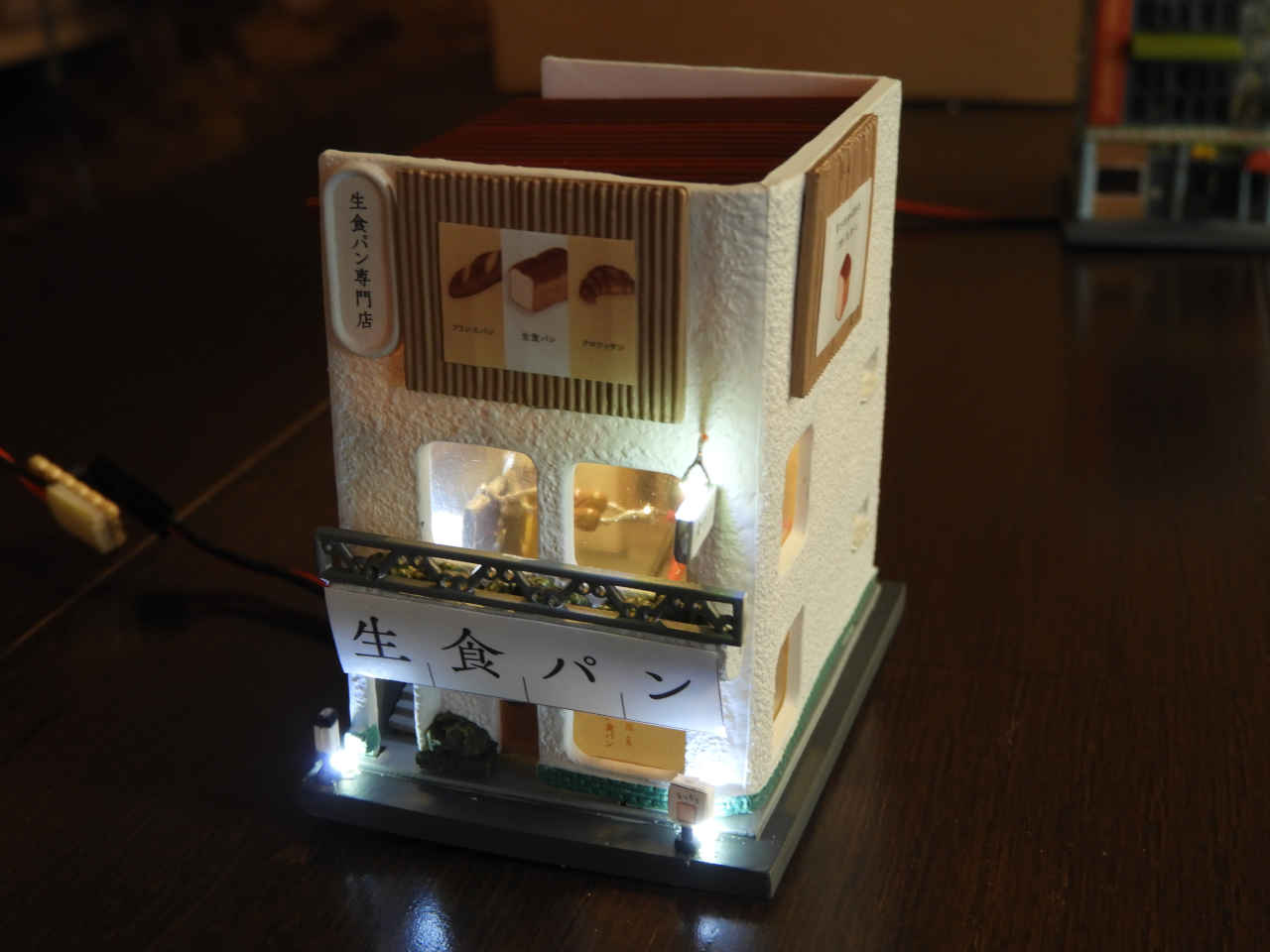 駅舎に照明を入れて設置。