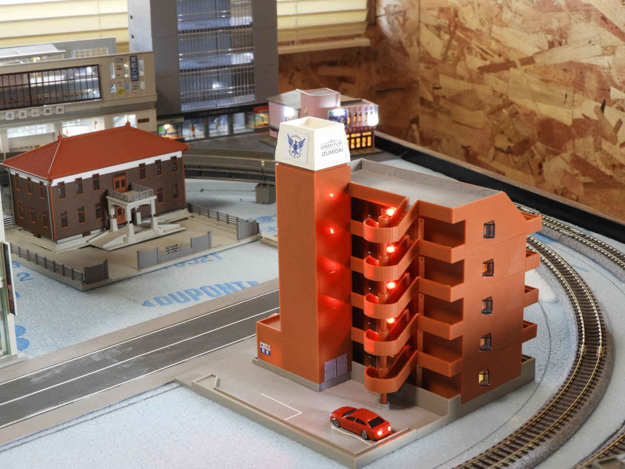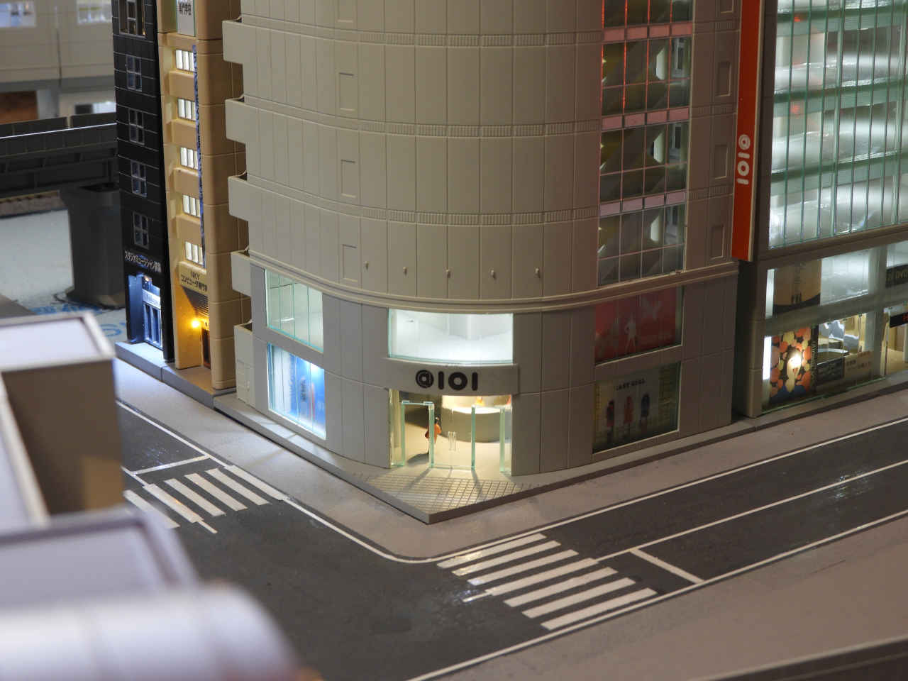 駅前に照明を組み込んだビルを仮配置