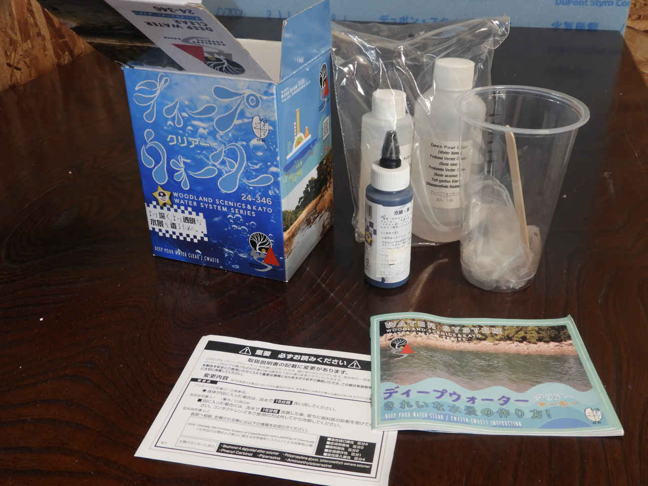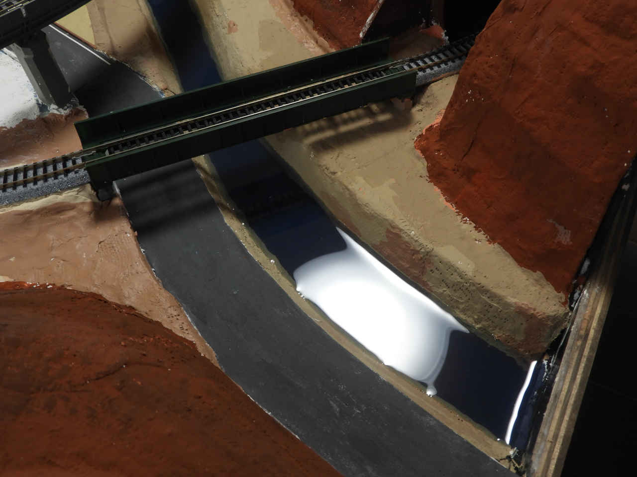 乾くと透明に硬化する薬剤を使って川に水を流す。科学の実験みたいな...