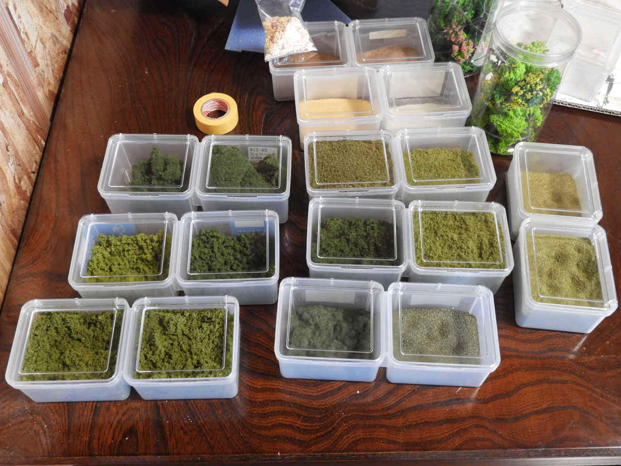 ひたすら山に「フォーリッジ(緑色の着色スポンジ)」を貼っていく。