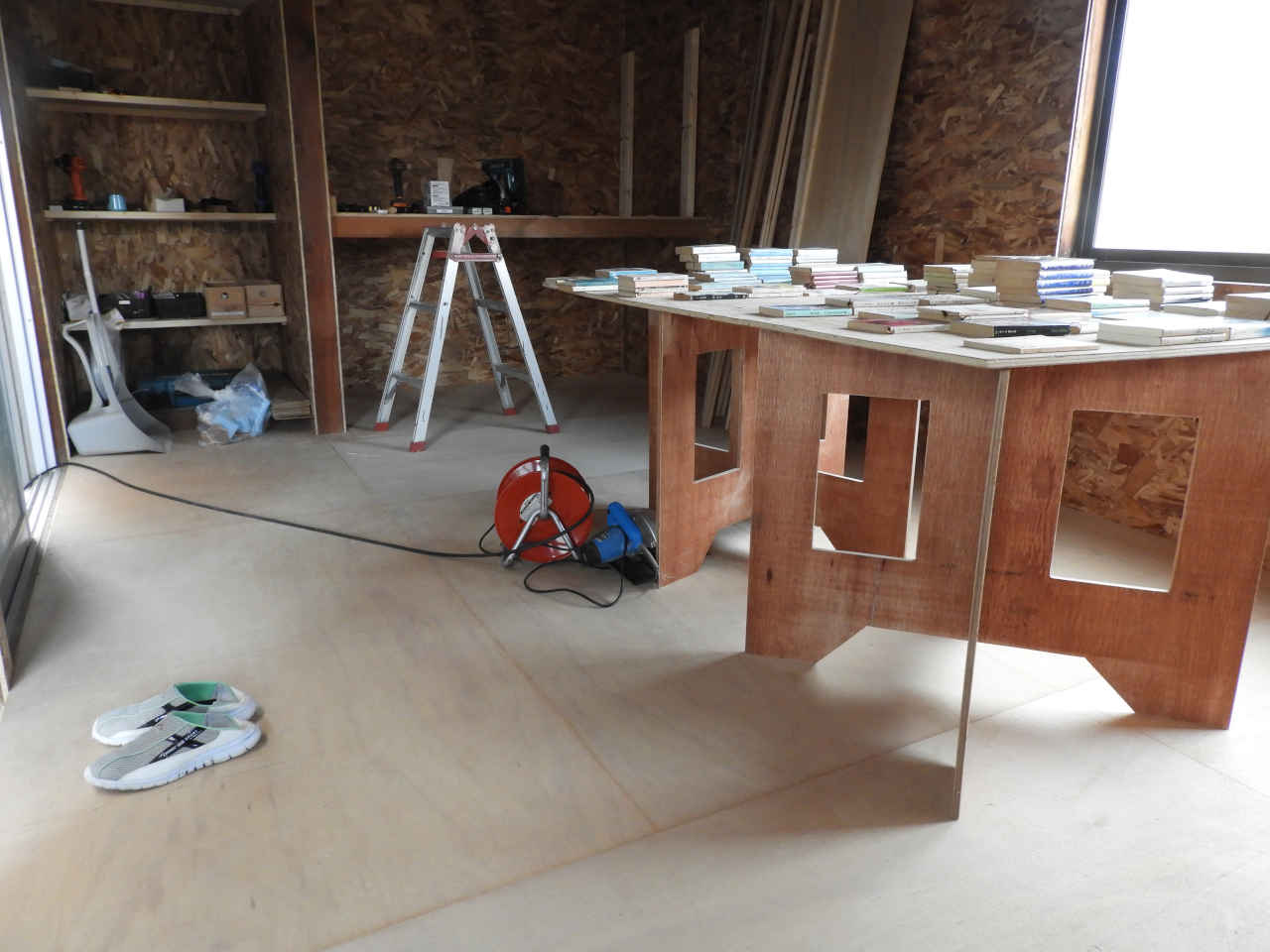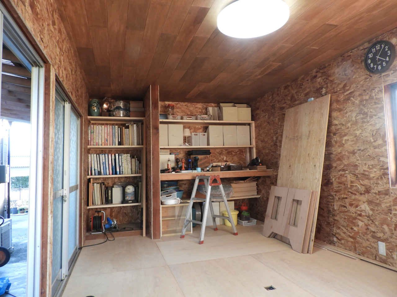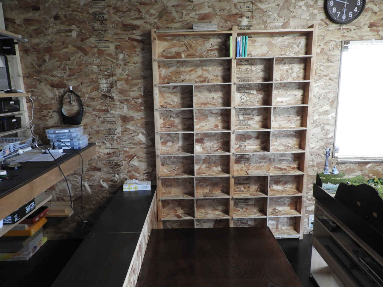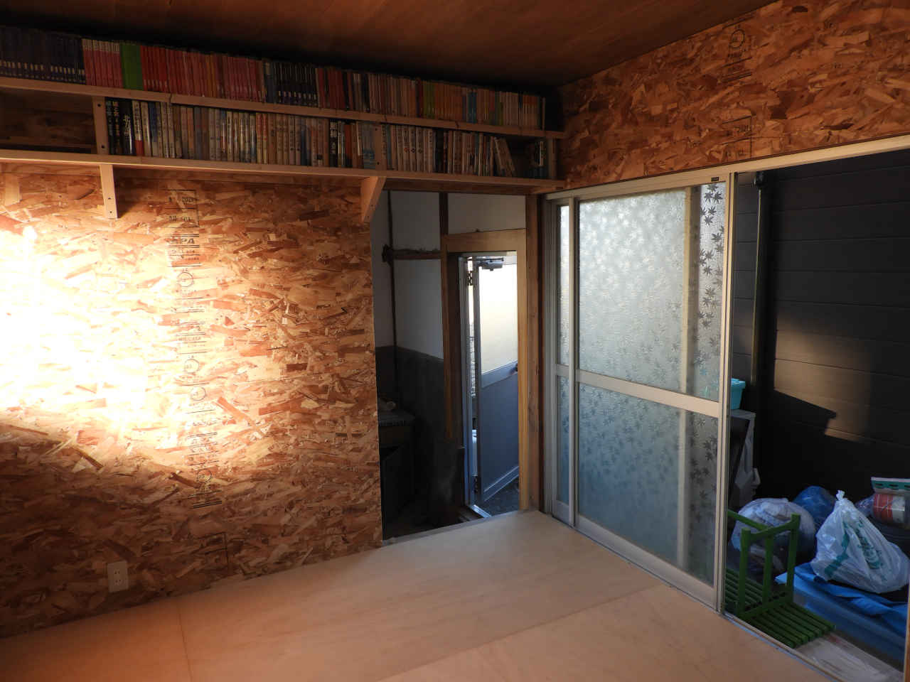 - 設置した棚に隣の部屋に押し込んだ、書籍・アルバムなどを移動。入り口の部屋の改装準備。