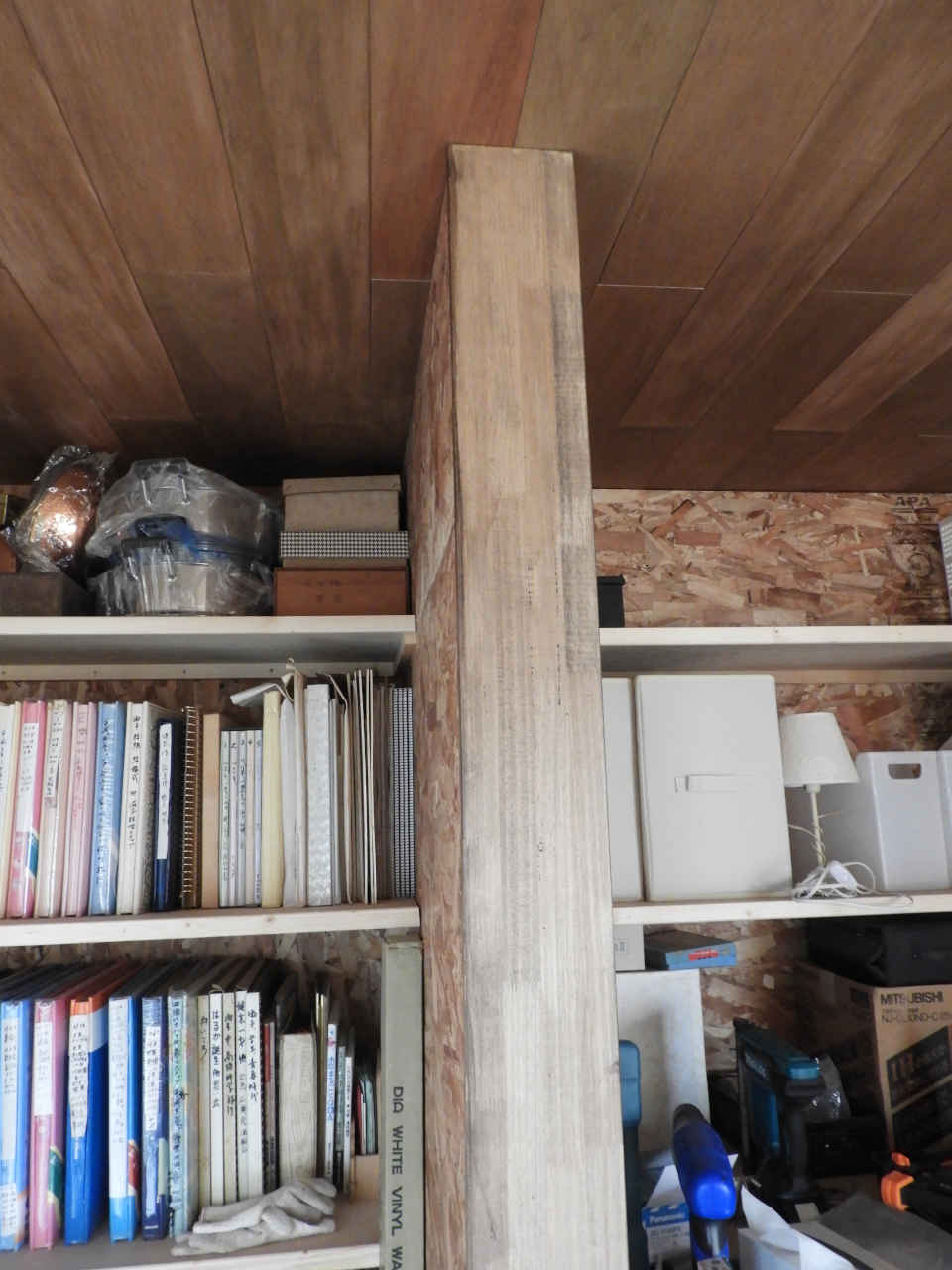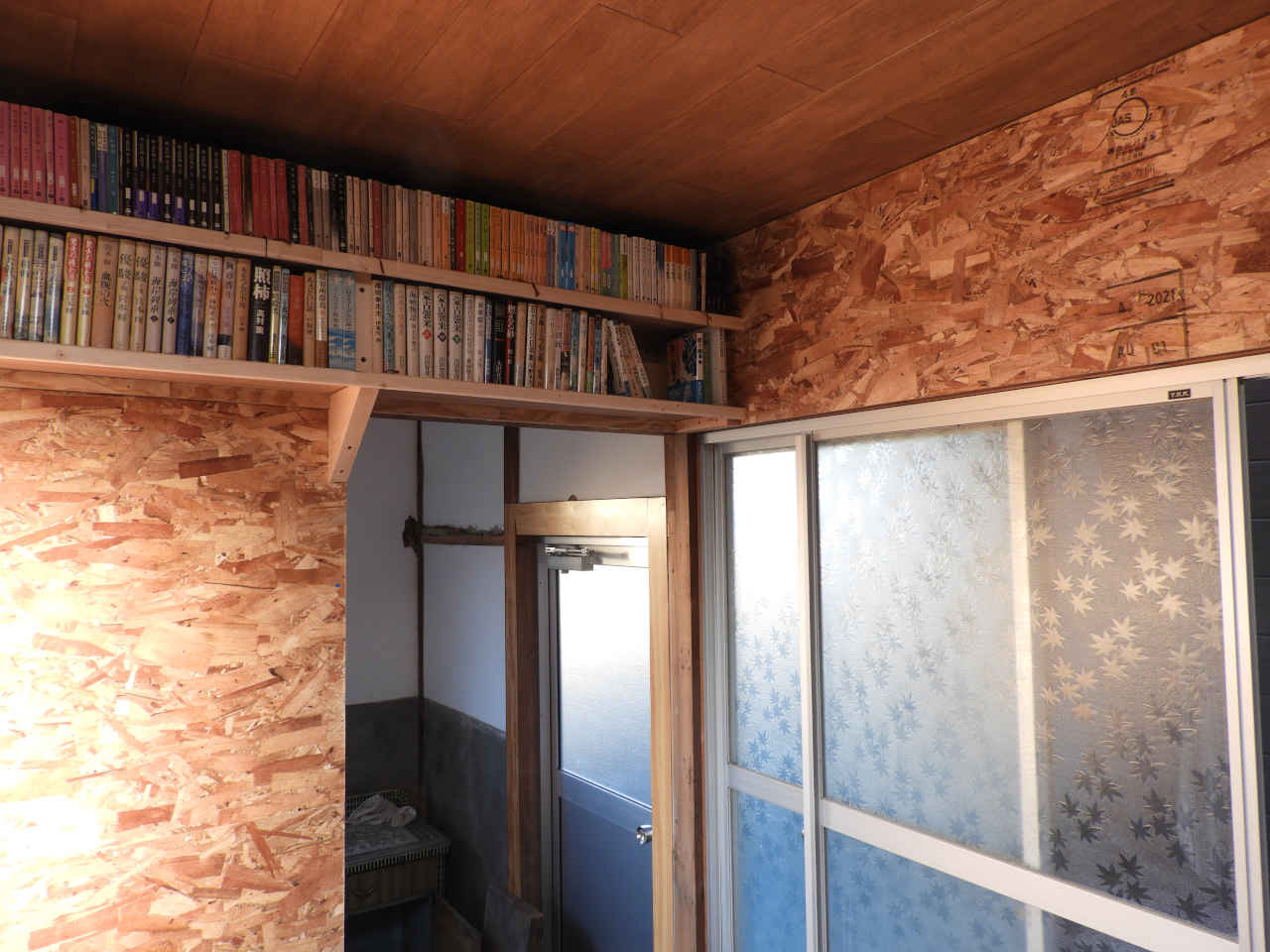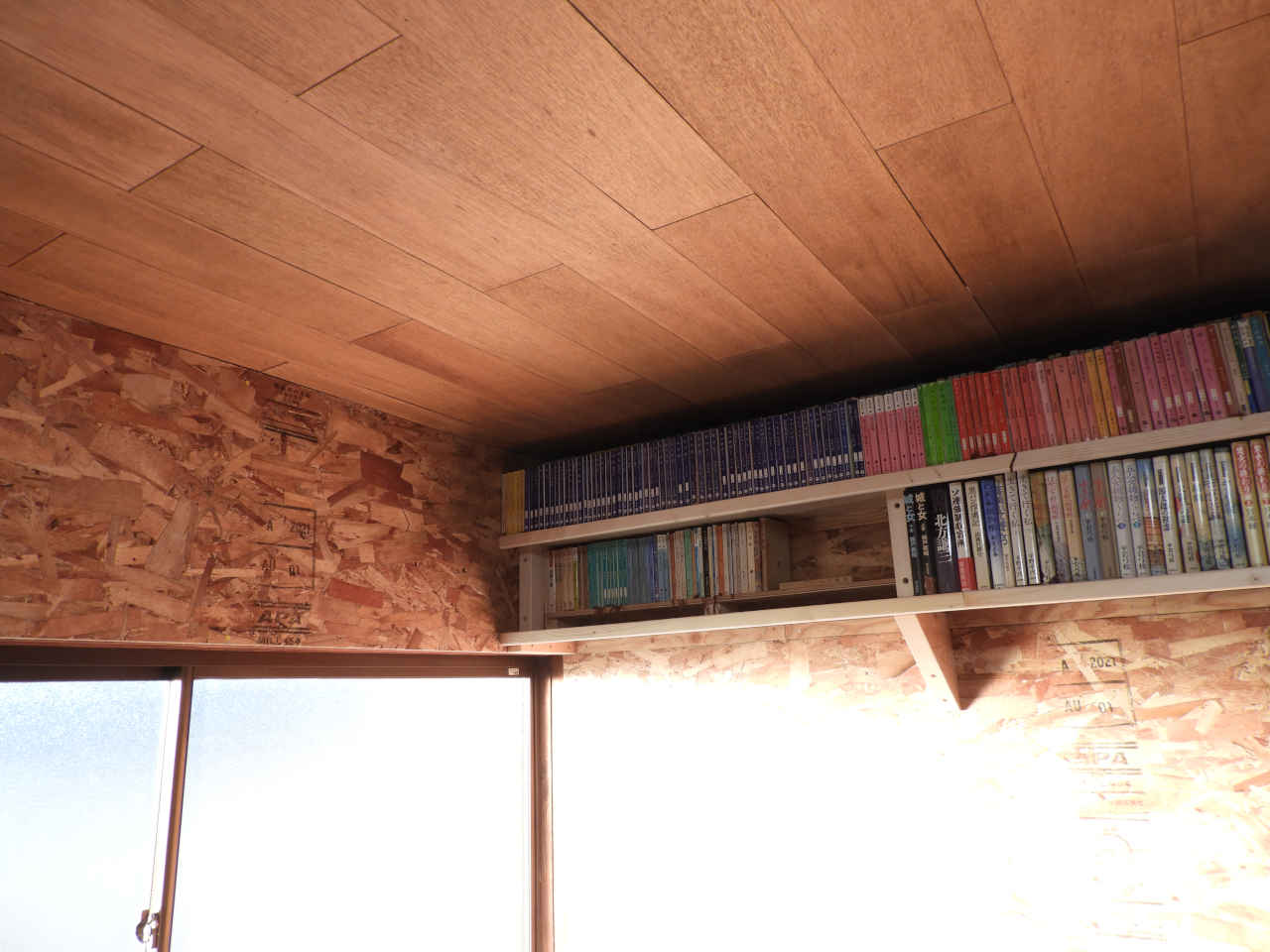 ギリギリ新書版も入るサイズに。リホーム時の壁板の残材を使って…