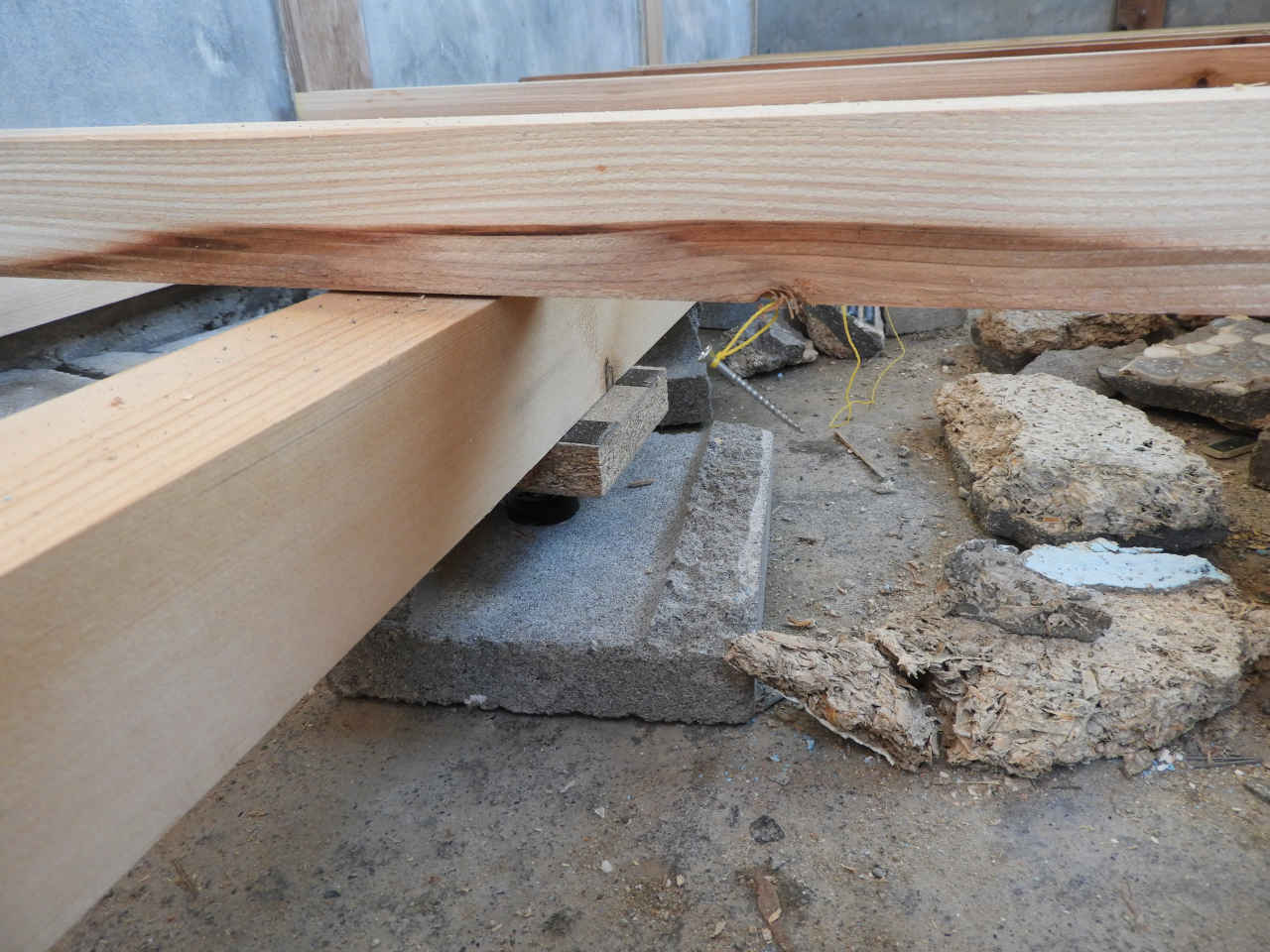 - 元の板張りの床に 40x30mm の角材を渡して補強する。