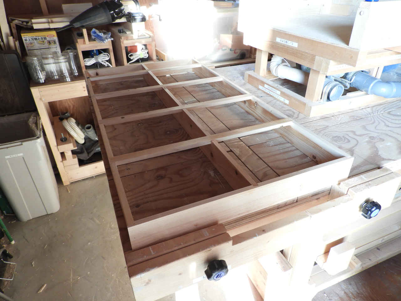 - 床の大引き材は 90mm角が入手できなかったので 60mm角をピッチを狭くして使用。